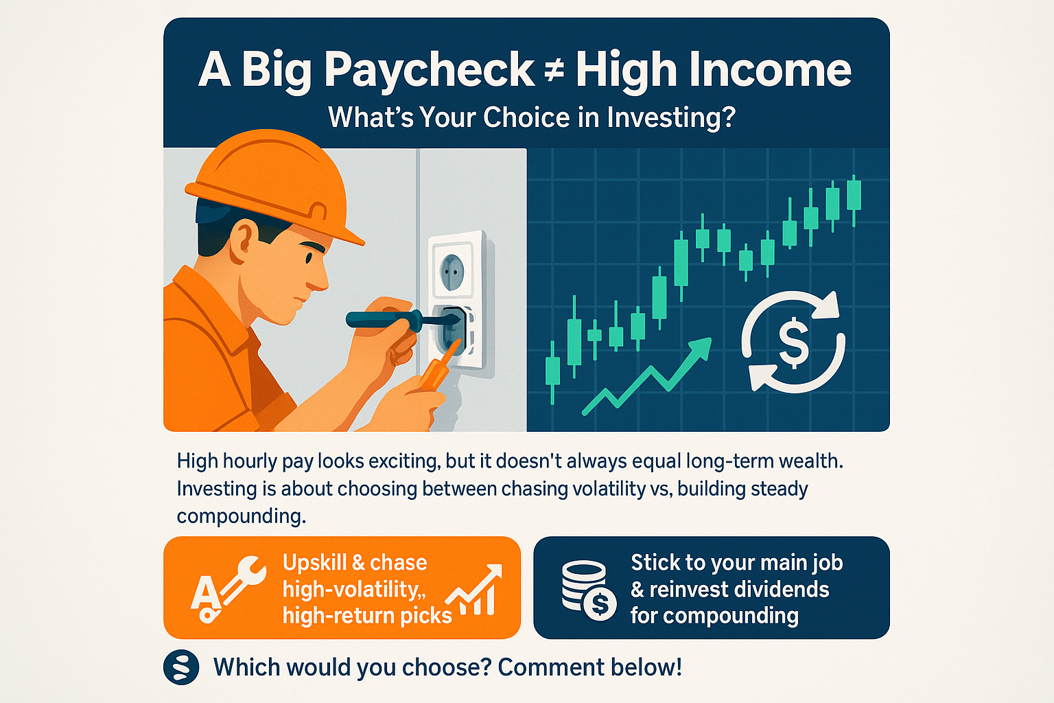 That’s not to say I don’t admire those who go for Option A. Upskilling to take on high-value side gigs can boost income, but it often comes with uncertainty, irregular demand, and physical limits on how much you can handle. In investing terms, it’s like timing volatile trades—you might win big once, but sustaining it is tough.