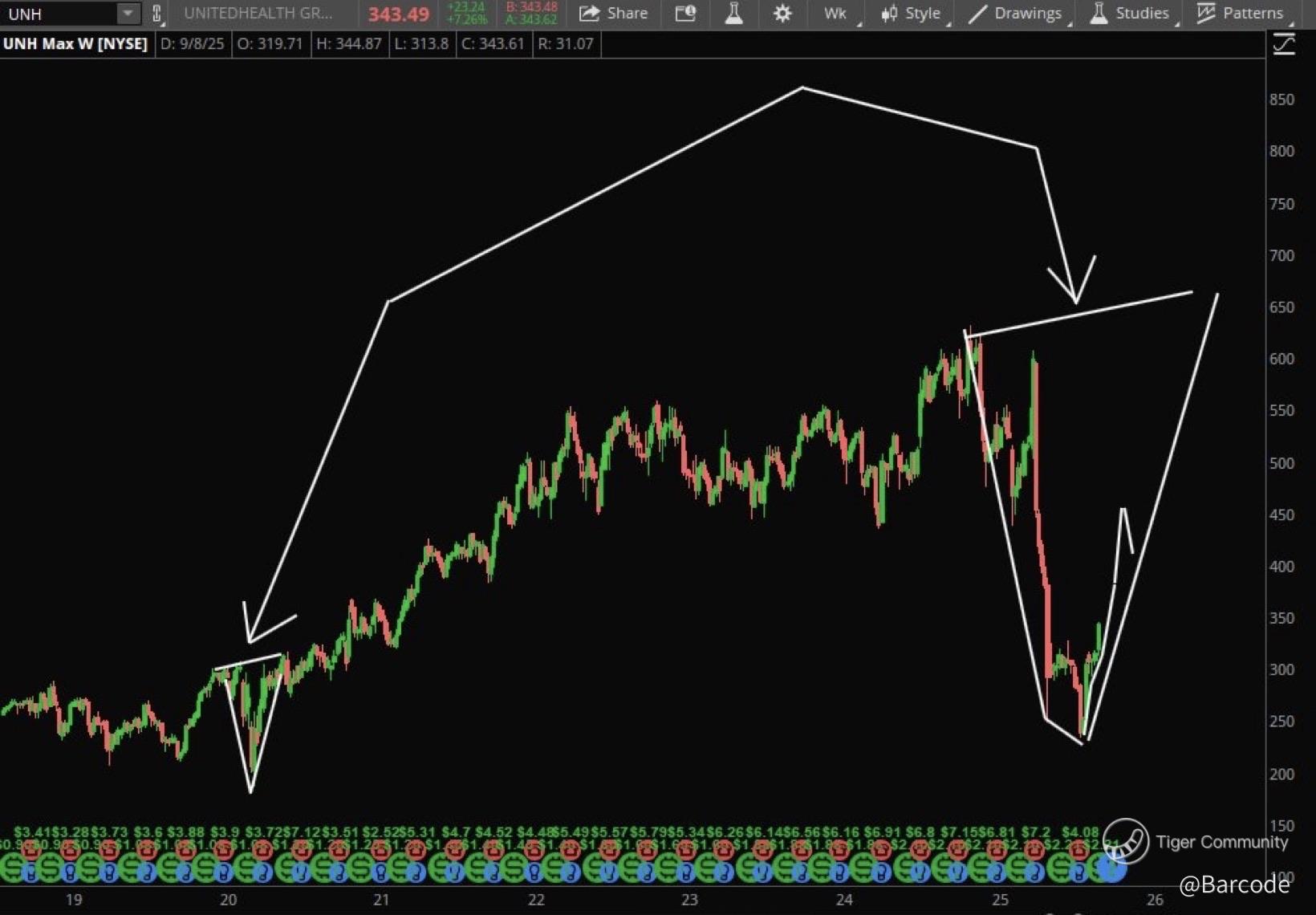 Technical momentum: As long as UNH holds above ~$320, momentum traders will likely keep buying dips. If it falls back below that level, a near-term top could be in place.