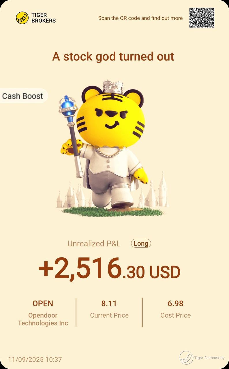 $Opendoor Technologies Inc(OPEN)$ The happiness comes so unexpectedly! Opendoor surged last night. As an AI-driven real estate platform, it’s opening a new chapter—finally aligning with investors’ call for a shift toward AI-powered software services.The AI application wave is quietly sweeping into the market—the curtain has just risen!