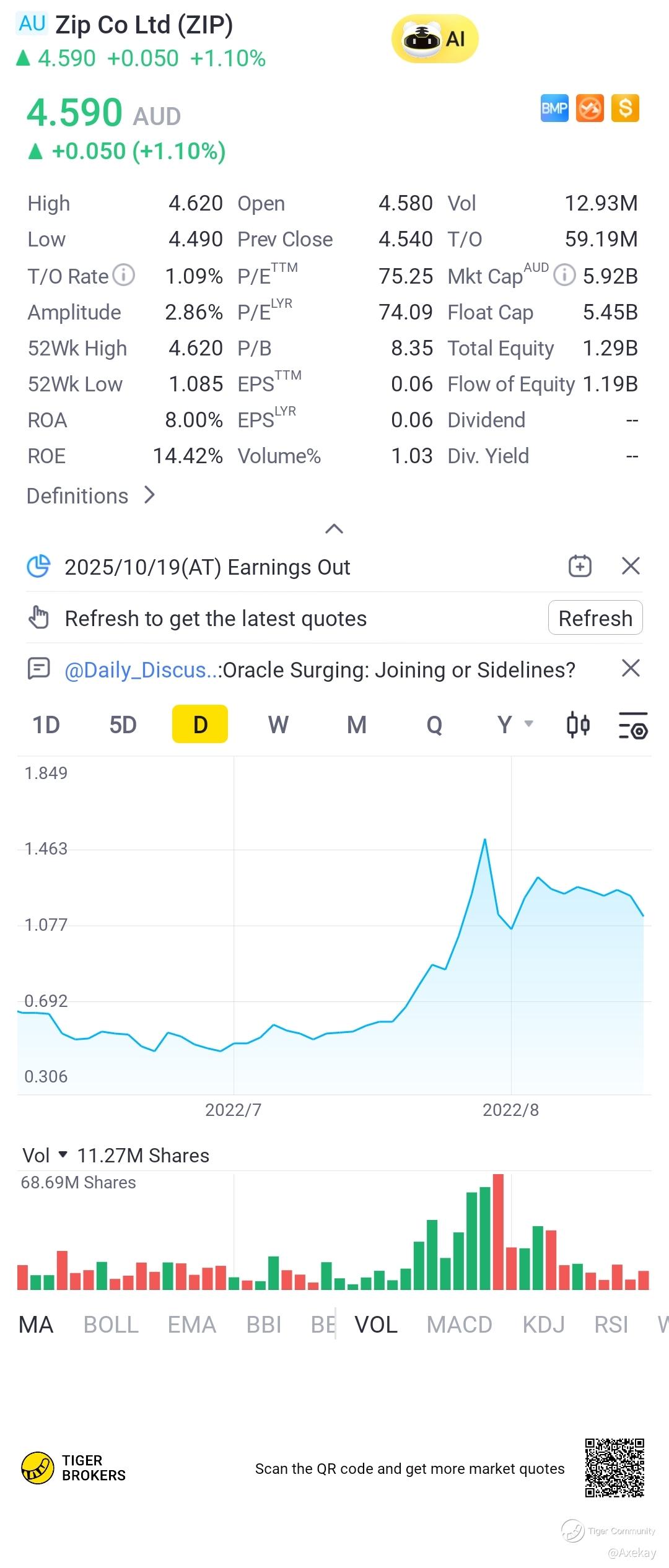 If anyone is worried about the recent unexplained fall of $Tiger Brokers(TIGR)$ , just remember $Zip Co Ltd(ZIP.AU)$ was AUD0.30 just a few years before it became AUD4.50 today, and $Palantir Technologies Inc.(PLTR)$ was USD7 and bashed to be a meme loss making stock before becoming an iconic stock that was recognised enough to be added into S&P500. Stocks will fall, but great stocks will always rise to new ATH eventually