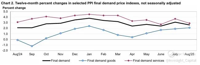 On Thursday, ahead of the U.S. market open, August PPI showed an unexpected drop: down 0.1% month-on-month versus expectations for a 0.3% rise. Year-on-year, PPI grew 2.6%, well below the prior reading and consensus of 3.3%. Core PPI (ex-food and energy) grew 2.8% y/y, missing forecasts of 3.5% and dropping from 3.7% previously. MoM core PPI also slipped 0.1%, compared to expectations for a 0.3% gain.