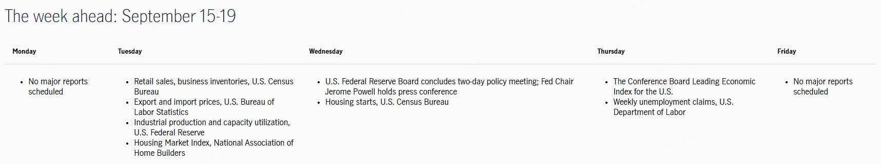 Major U.S. stock indexes rose for the week ahead of the Federal Reserve's September meeting, where a rate cut is widely anticipated. AI-driven optimism, boosted by Oracle’s strong guidance and new deals, also lifted the markets. The Dow, S&P 500, and Nasdaq all reached record highs during the week, though the Dow and S&P 500 dipped slightly on Friday. The Russell 2000 posted its sixth consecutive weekly gain.