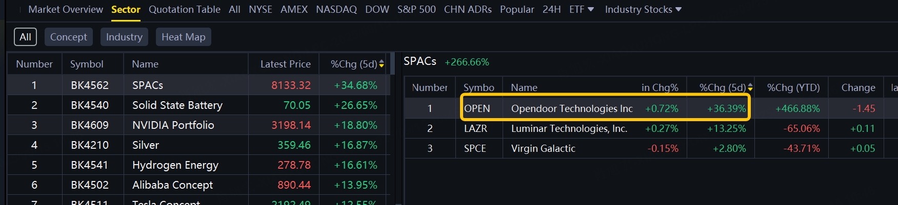 The best-performing concepts is SPACs. Considering the different perceptions of the stock, this time TigerPicks chose $Opendoor Technologies Inc(OPEN)$ to have a fundamental highlight to help users understand it better.