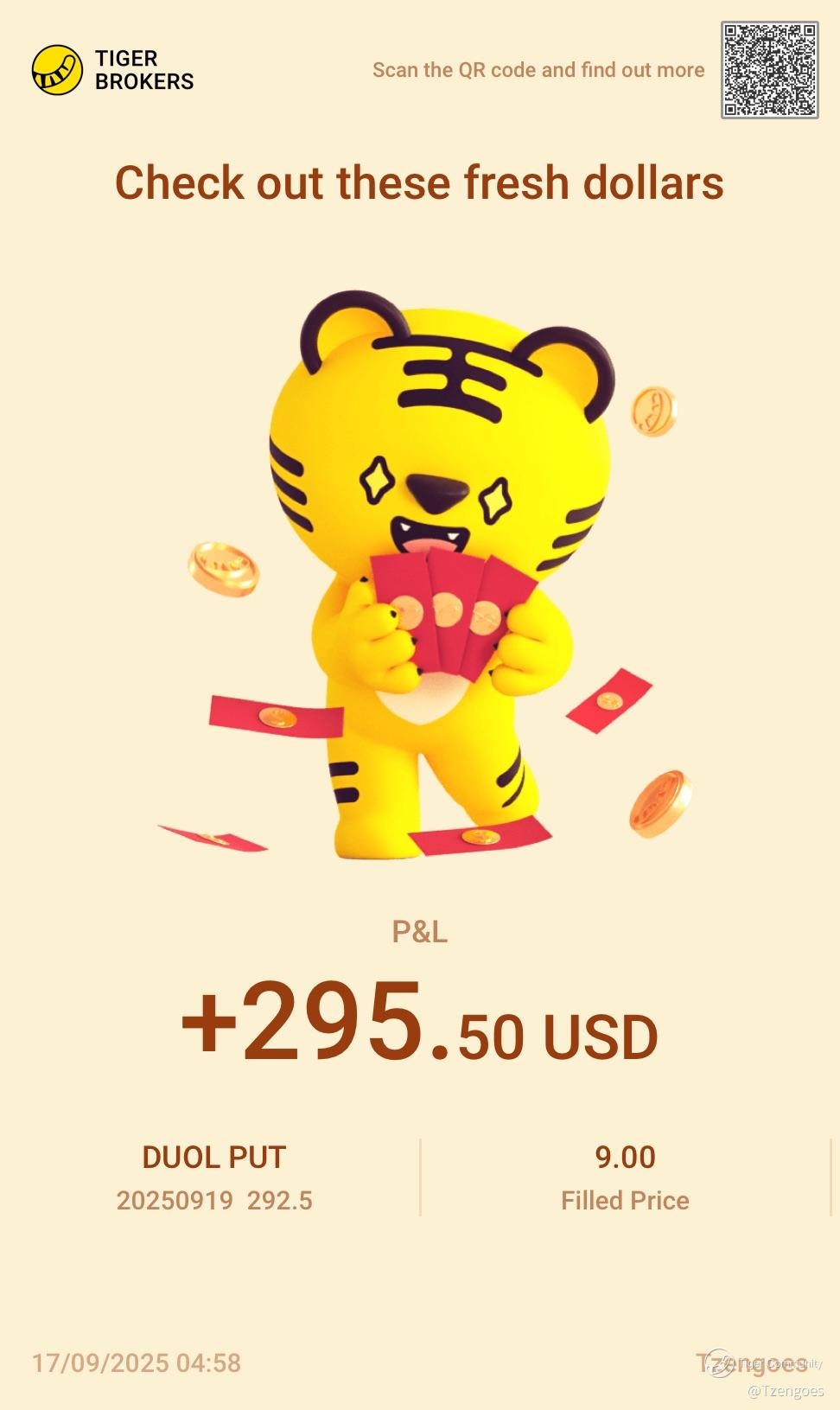 $DUOL 20250919 292.5 PUT$ Options Scalping. Celebrating small wins