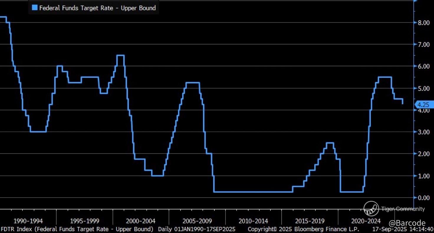 The long-term Fed funds rate history chart shows this cut marks the beginning of the descent from the fastest hiking cycle since the 1980s. Each easing cycle in history catalyzed powerful factor rotations; today’s tape and chart sequence show the early signs repeating.