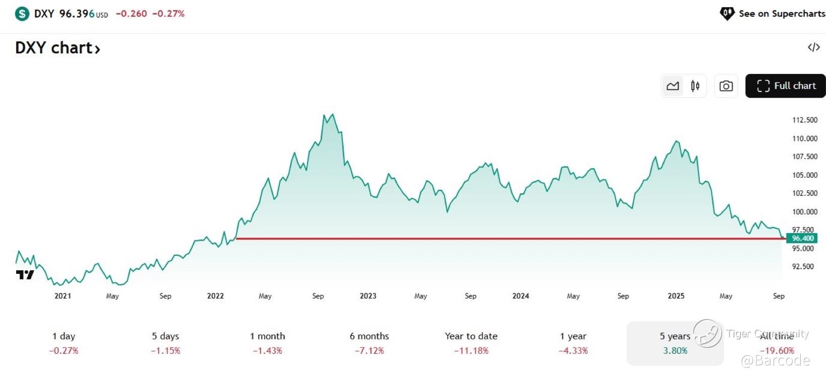 The Bloomberg dollar index chart (DXY) highlights a break to 96.40, the lowest since Feb 2022, down –11.18% YTD. These aren’t just moves; they’re confirmation of a broad regime shift in global capital flow.