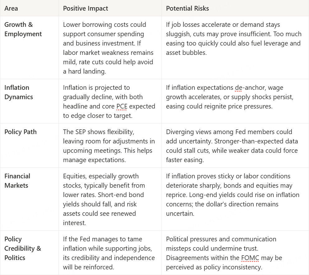 Overall, the Federal Reserve's decision to cut interest rates at its September meeting represented a modest adjustment in line with market expectations, rather than a large-scale stimulus. It reflects the Fed's concern over downside risks to the labor market while maintaining vigilance regarding the fact that inflation has not yet been brought back to the 2% target.