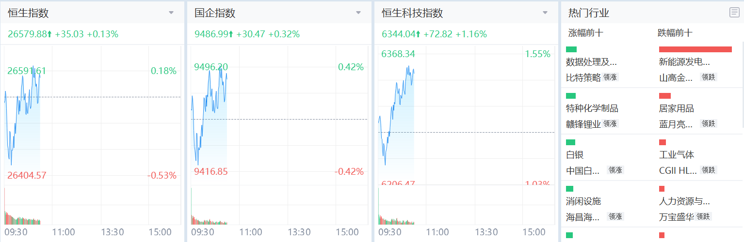 截至目前,港股三大指數繼續衝高後漲勢略有回落。聯儲局點陣圖顯示2025年還將降息50個基點,但鮑威爾強調這並非長降息週期的開始。
