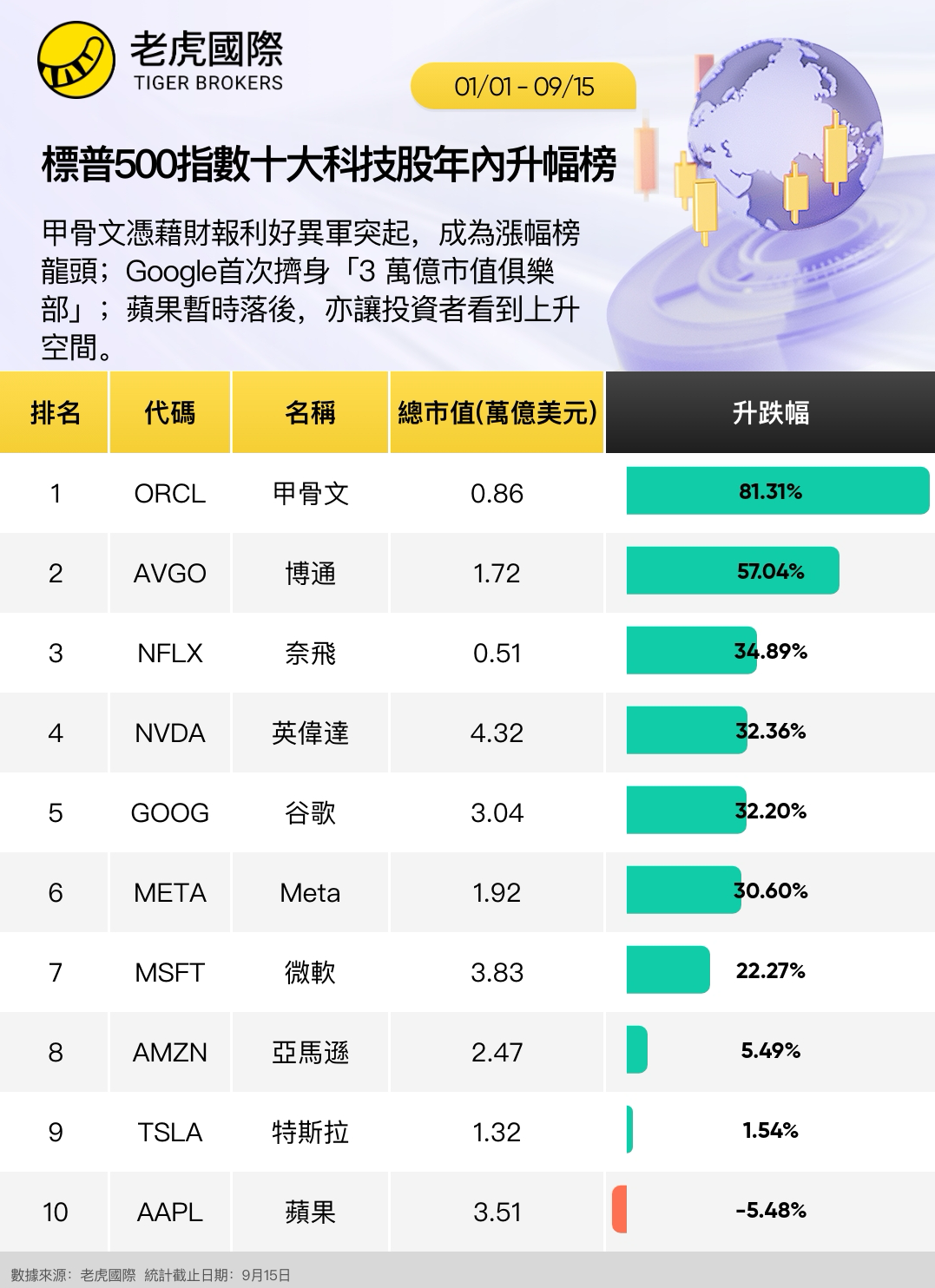 美股中表現最好的包括 $甲骨文(ORCL)$ , $博通(AVGO)$ 等,那麼在降息交投火熱之下,今年下半場你打算如何投資呢?[YoYo]
