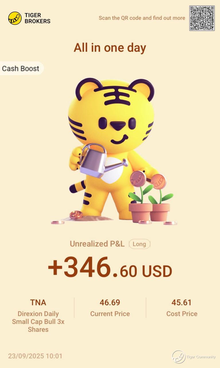 $Direxion Daily Small Cap Bull 3x Shares(TNA)$ 's small-cap leverage = adrenaline rush! Daily breakout but wild swings, mixed economic signals. Leverage gains tempting but risky - taking money off the table wisely!