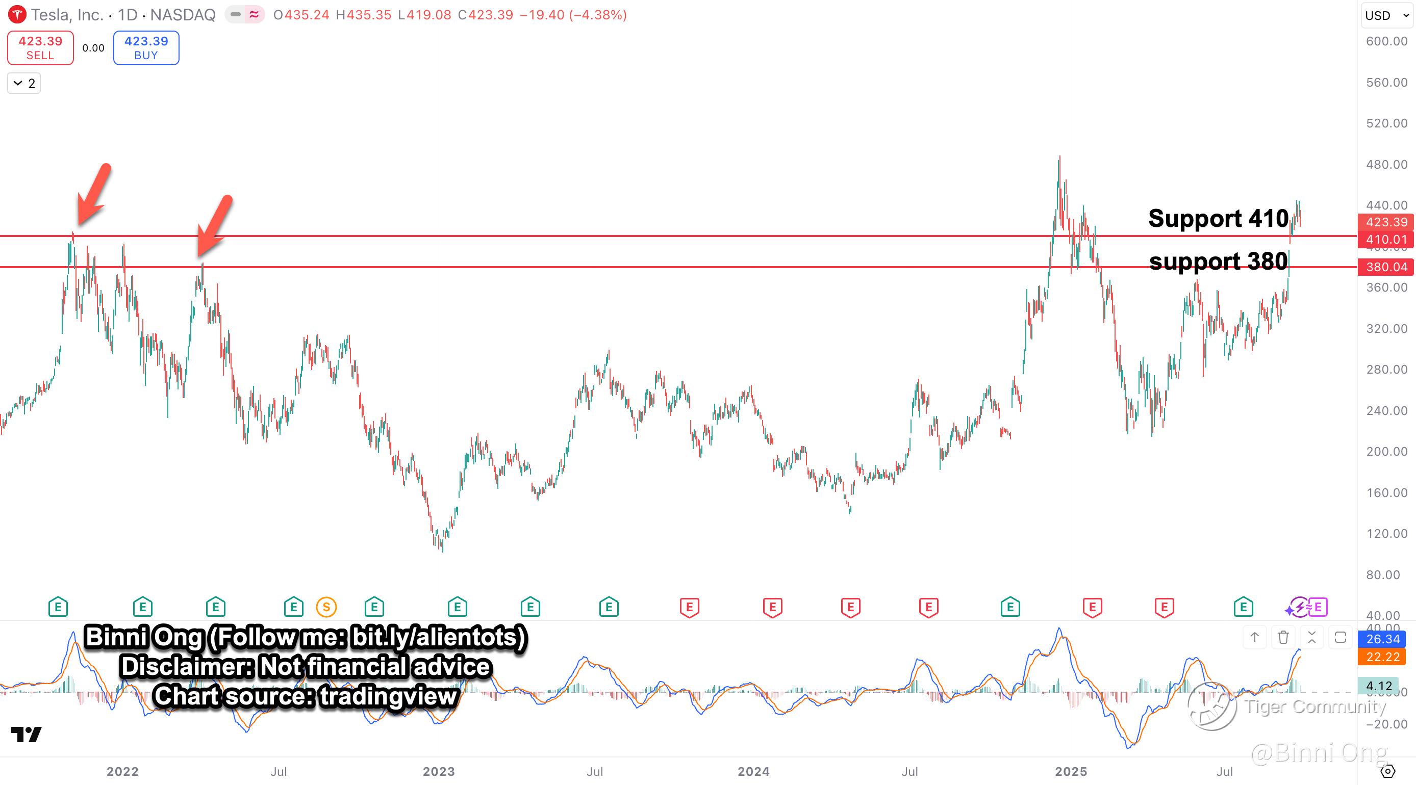 Long DLCs (e.g. $TESLA 3xLongSG261006(TSYW.SI)$ ) : May benefit if price holds above ~US$410 and pushes through US$440 with strength.