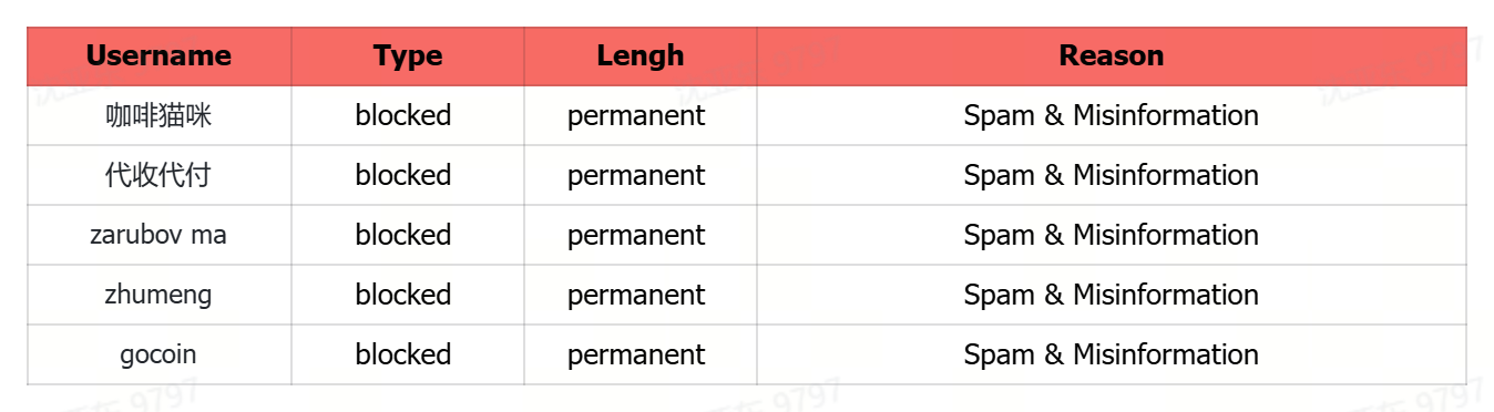 Here is the List of Banned Users for this week: