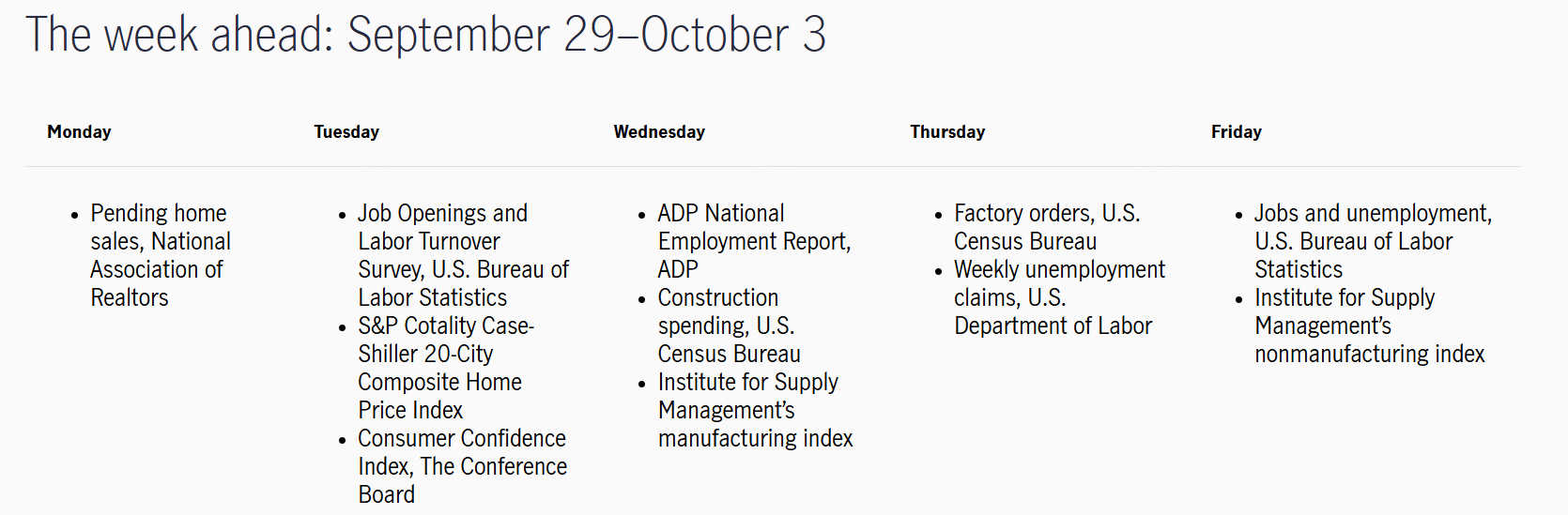 Major U.S. stock indexes finished the week lower, driven in part by some hawkish commentary from Federal Reserve officials that seemed to dampen investor optimism around the pace of further interest rate cuts. The Nasdaq Composite fared worst, falling 0.65%, followed by the Russell 2000 Index, which registered its first weekly loss since early August. The S&P MidCap 400 Index and S&P 500 Index also fell, while the Dow Jones Industrial Average was little changed. Within the S&P 500, the energy sector rallied, advancing alongside oil prices in response to President Donald Trump’s call for European Union nations to end purchases of Russian oil and gas. Most other sectors declined.