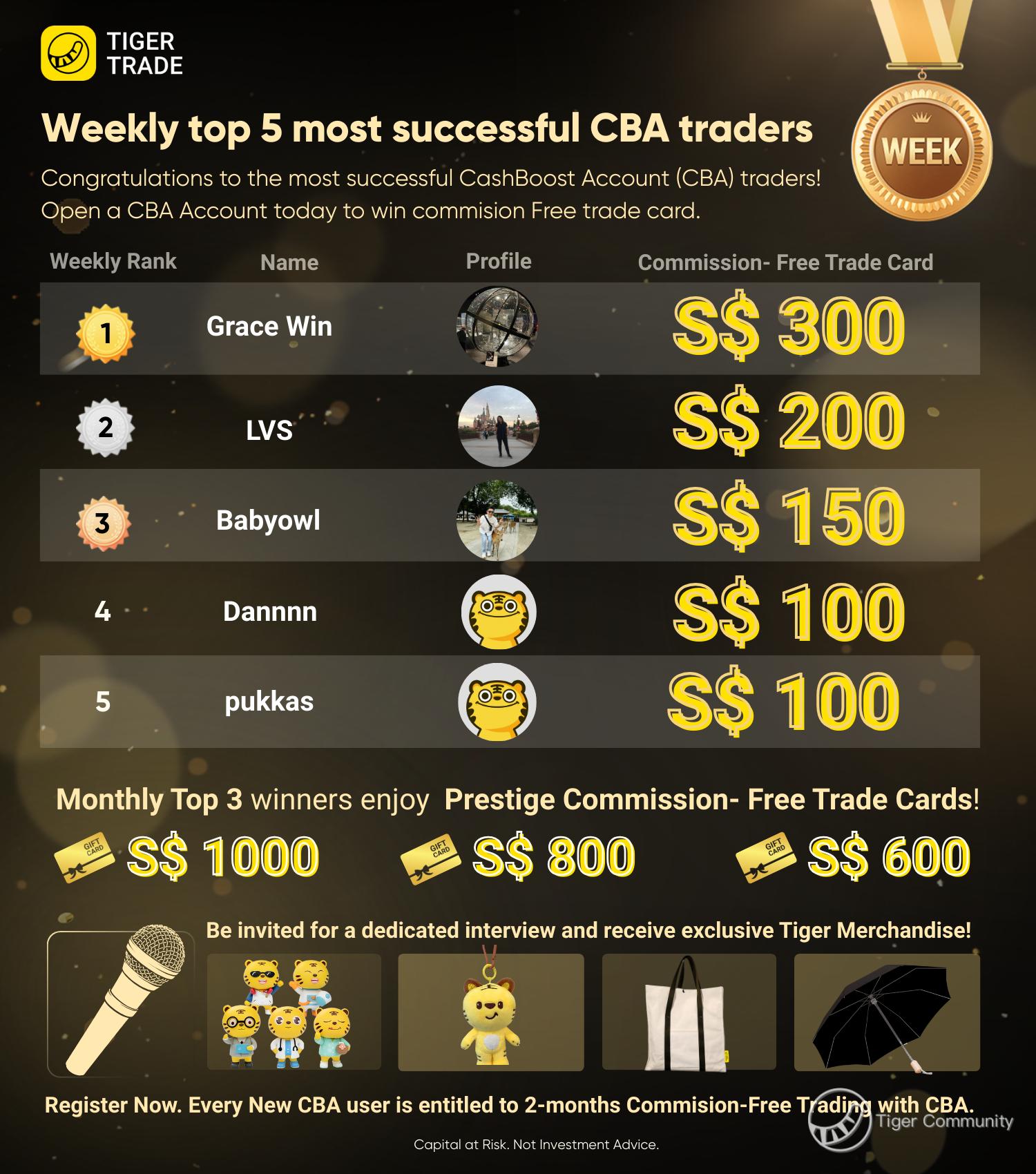 Weekly Rewards of Commission-Free Trade Card ranging from SGD 100~SGD 300!