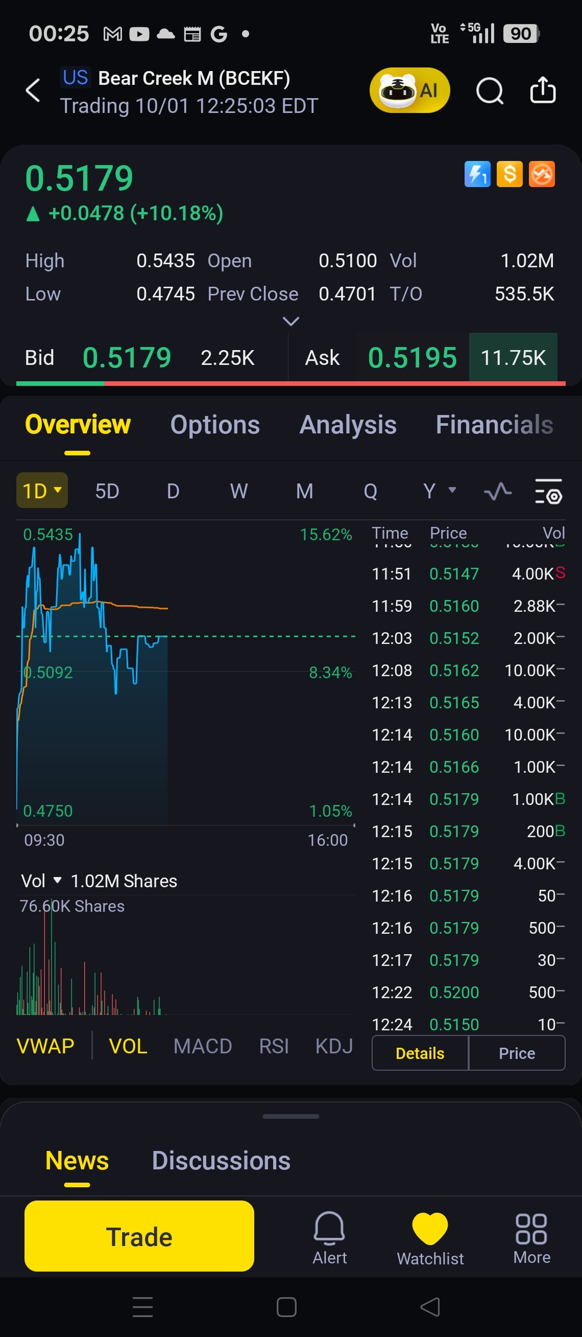 Bear creek owns an undeveloped silver mine with NAV going up 120 million at 1 dollar silver price appreciation .. fair value 1 dollar usd and is attracting interests from public with recent share price appreciating 10% almost every trading day ..