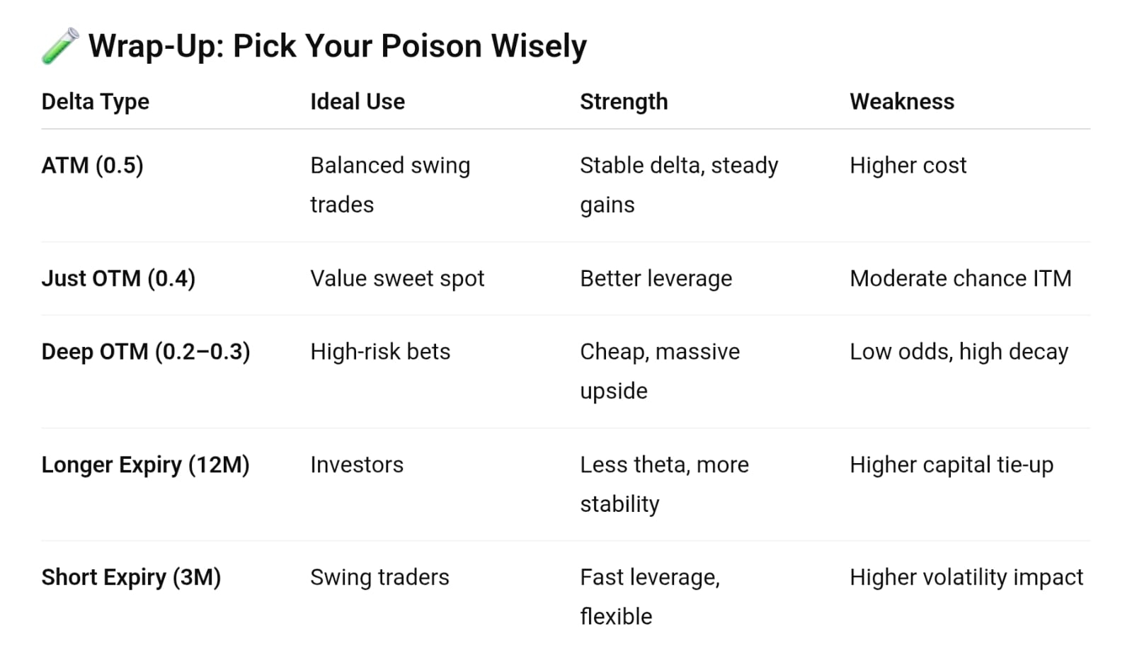 Your delta, expiry, and strategy should march in sync with your conviction.