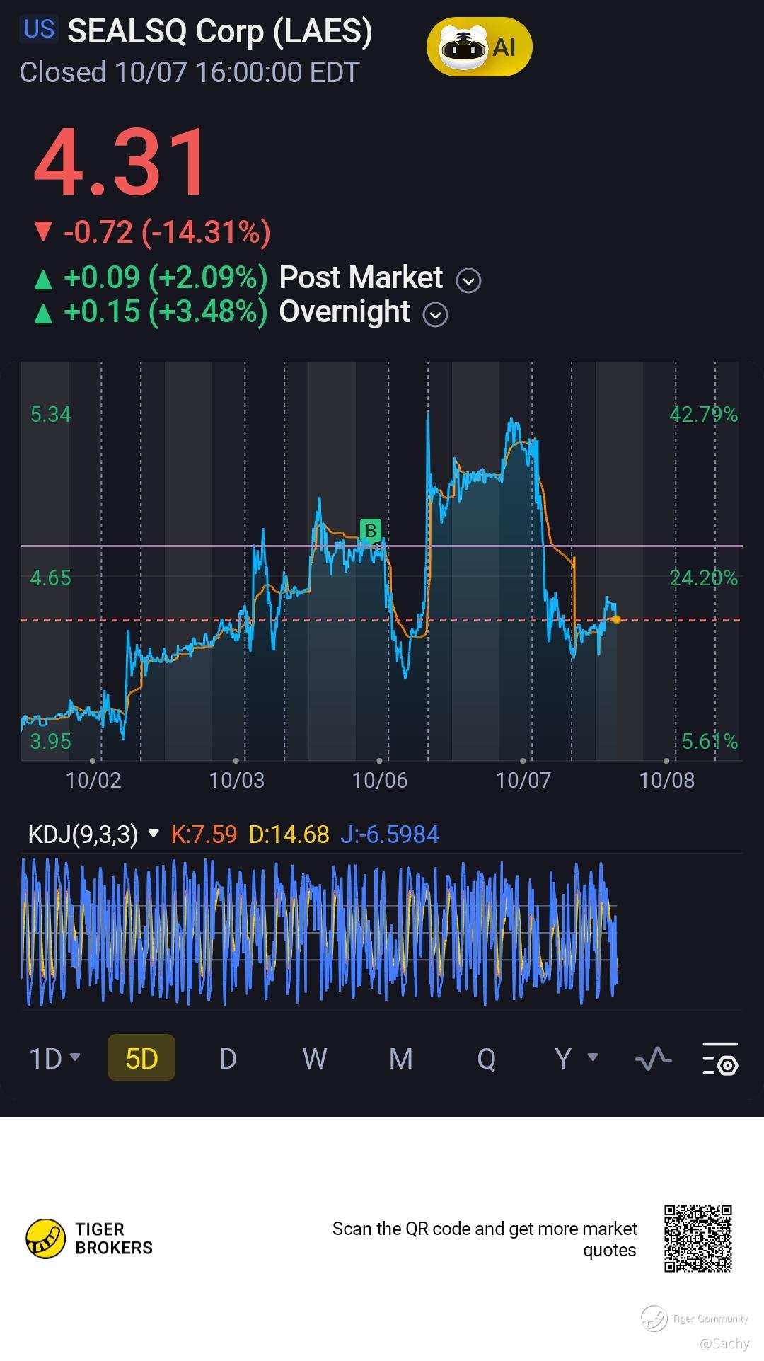 $SEALSQ Corp(LAES)$ This is what happens when you dont concentrate and trade like a robot. Have to wear the loss now and hope it rebounds again.