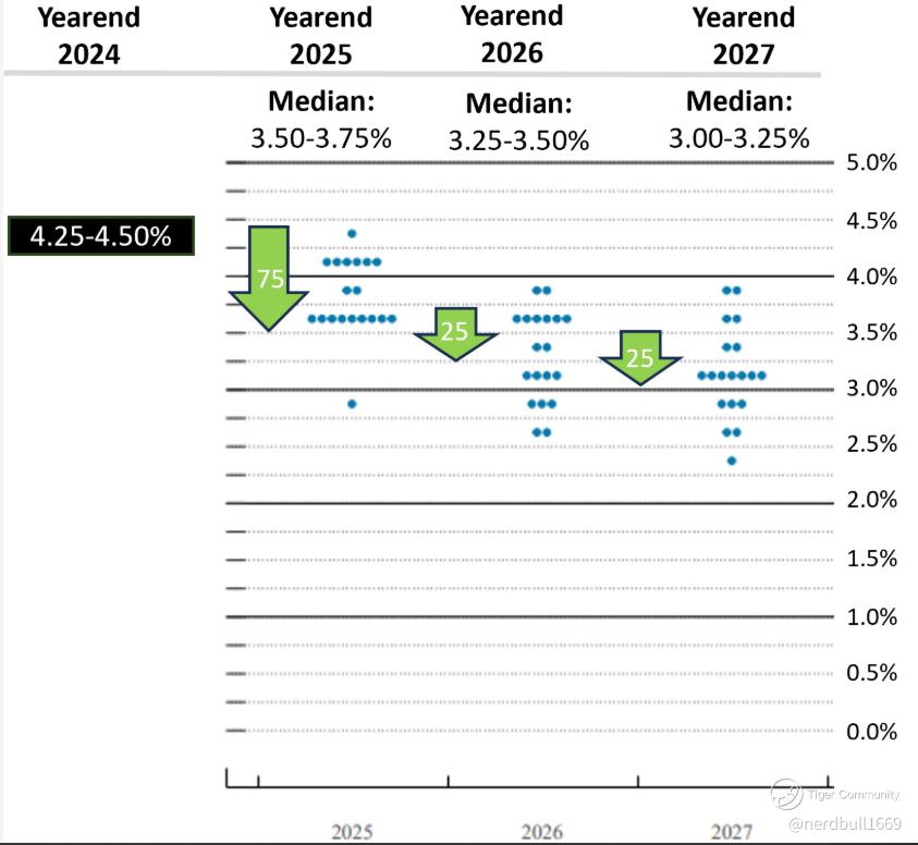 At the September meeting, the Fed cut rates 25 bps and signaled two more cuts this year, bringing the dot plot median to a 3.50%–3.75% terminal range by end-2025.