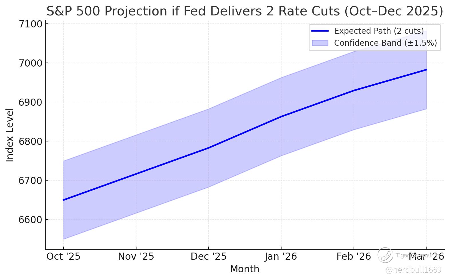 If the market consensus of two Fed rate cuts (October and December 2025) holds, the S&P 500 could follow a gradual 5% advance into early 2026.
