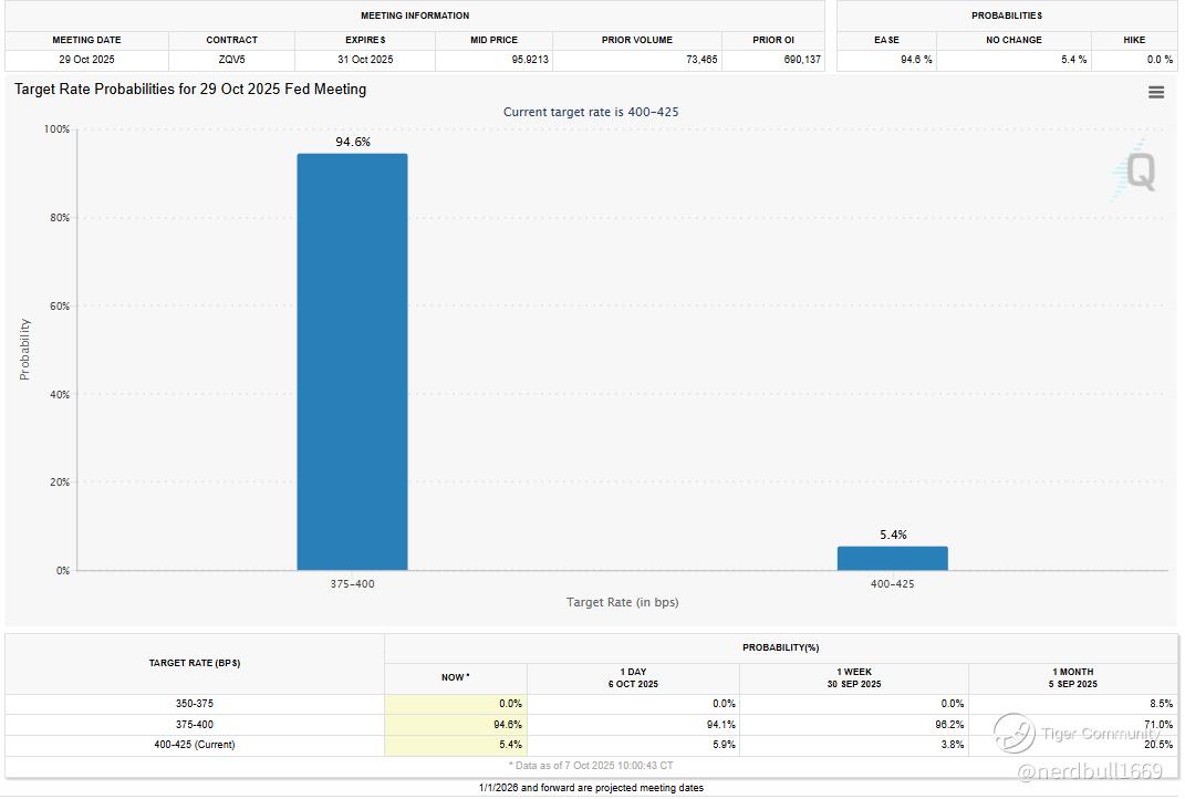 The current U.S. government shutdown has disrupted the release of key economic data (jobs, CPI, etc.), creating a “data vacuum.”