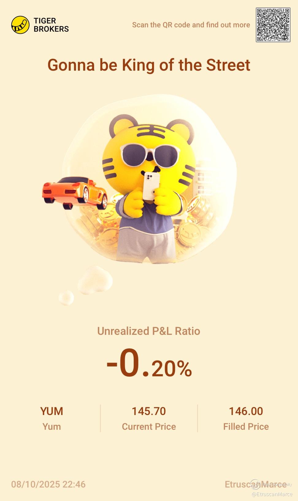 $Yum(YUM)$ buying this for a swing trade. start a small position and monitor the price.