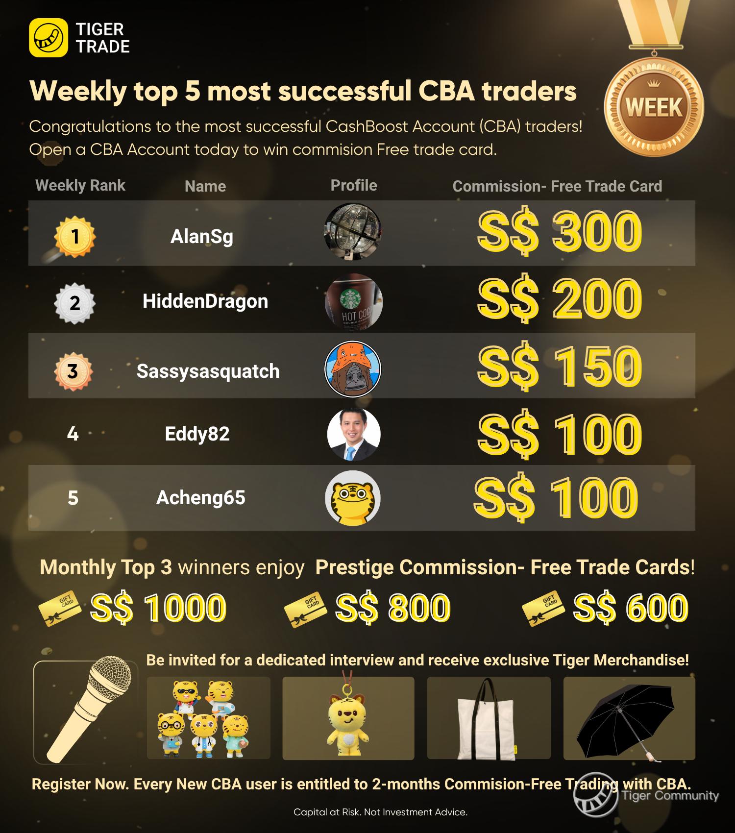 Weekly Rewards of Commission-Free Trade Card ranging from SGD 100~SGD 300!