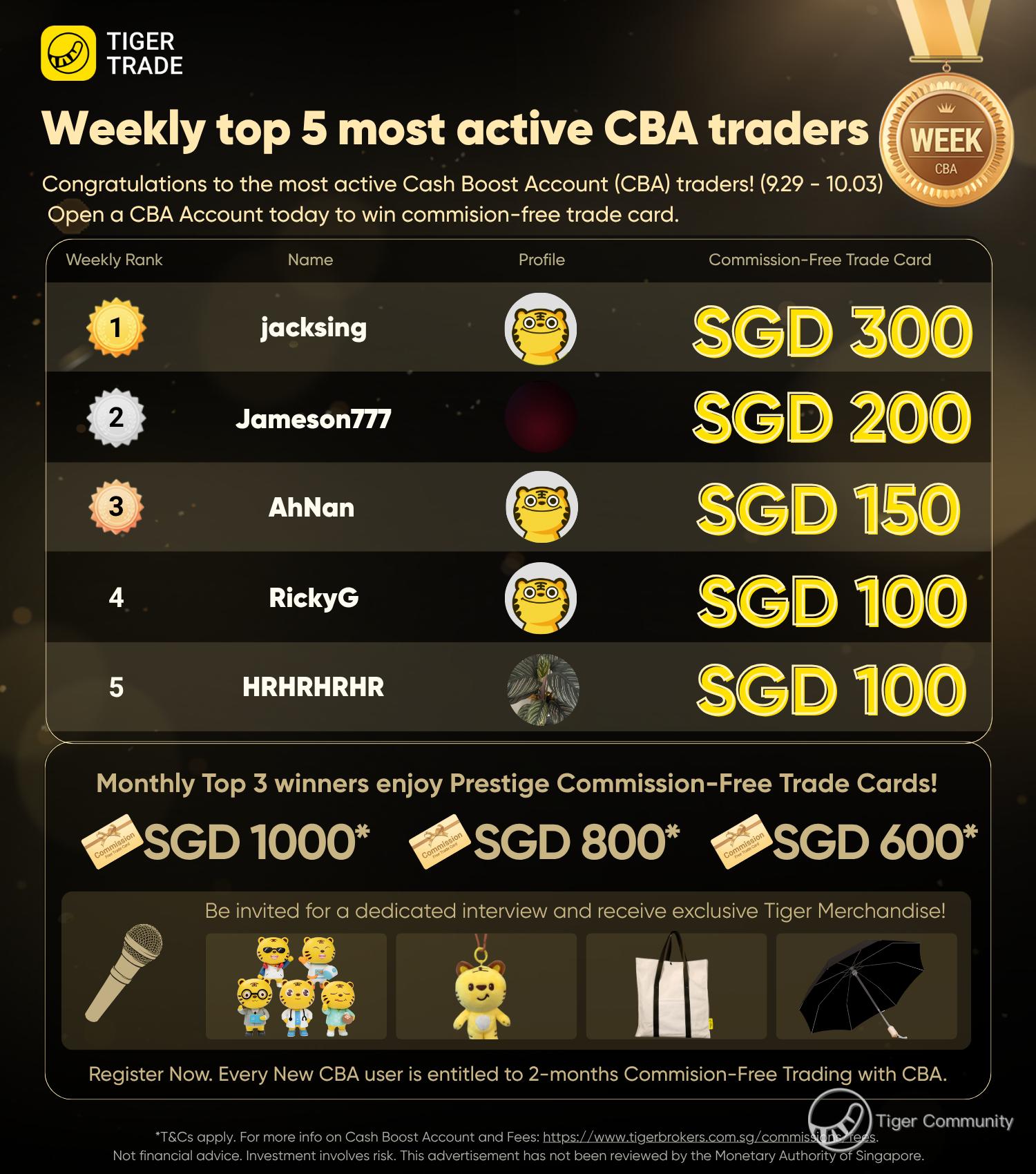 🎉🎉Here we present the top 5 most active/promising Cash Boost Account (CBA) traders for the week of September 29th - October 3rd! 🎉🎉