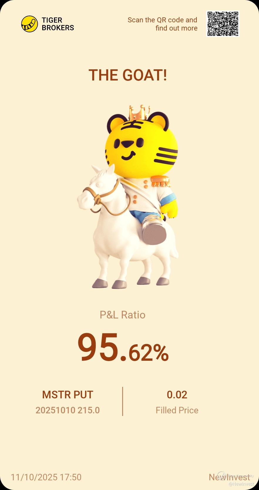 $MSTR 20251010 215.0 PUT$ Buy back to collect premium and to sell another PUT for next week.