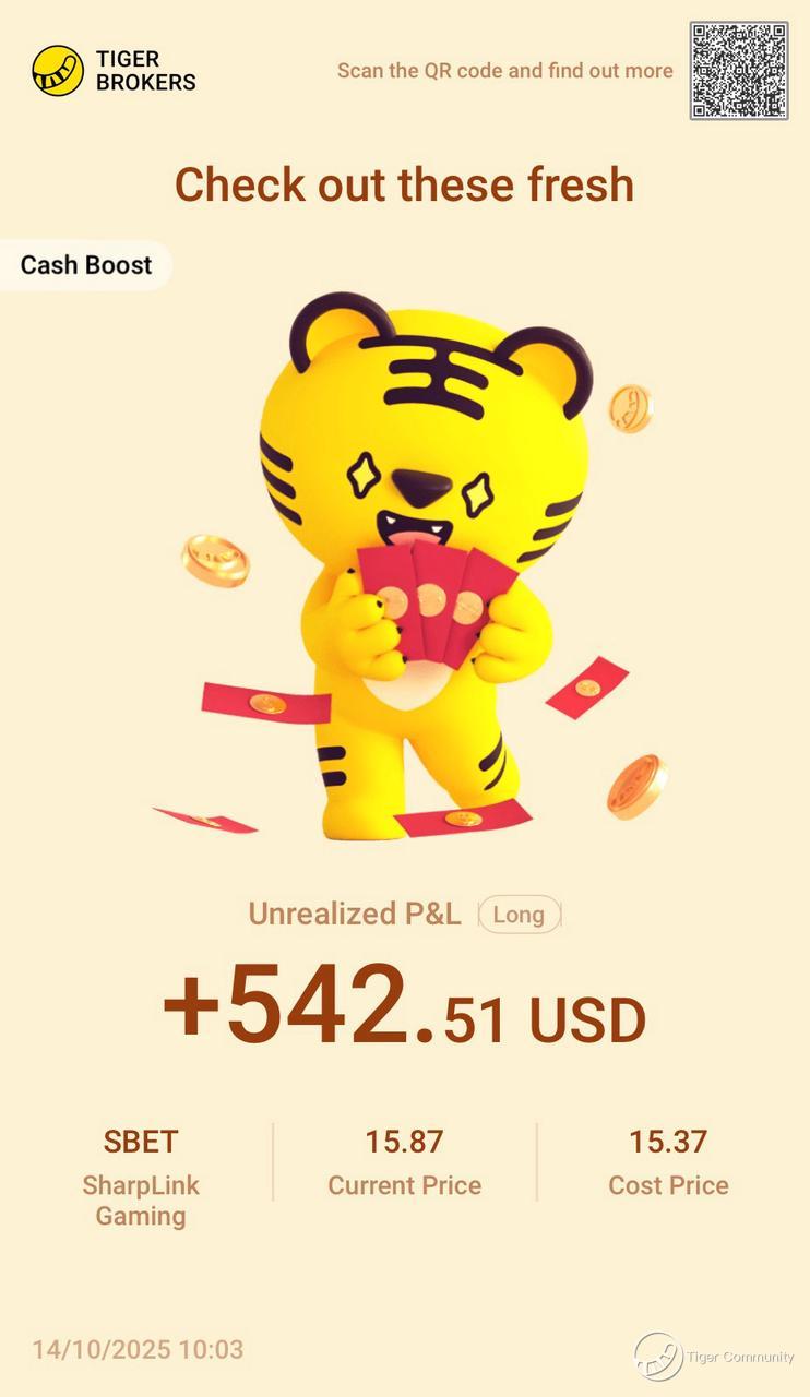 $SharpLink Gaming(SBET)$ 's gaming play finally blooming! Sports betting potential unfolding, modest gains but trend improving. Small caps demand extra patience - waiting for the wind to lift!