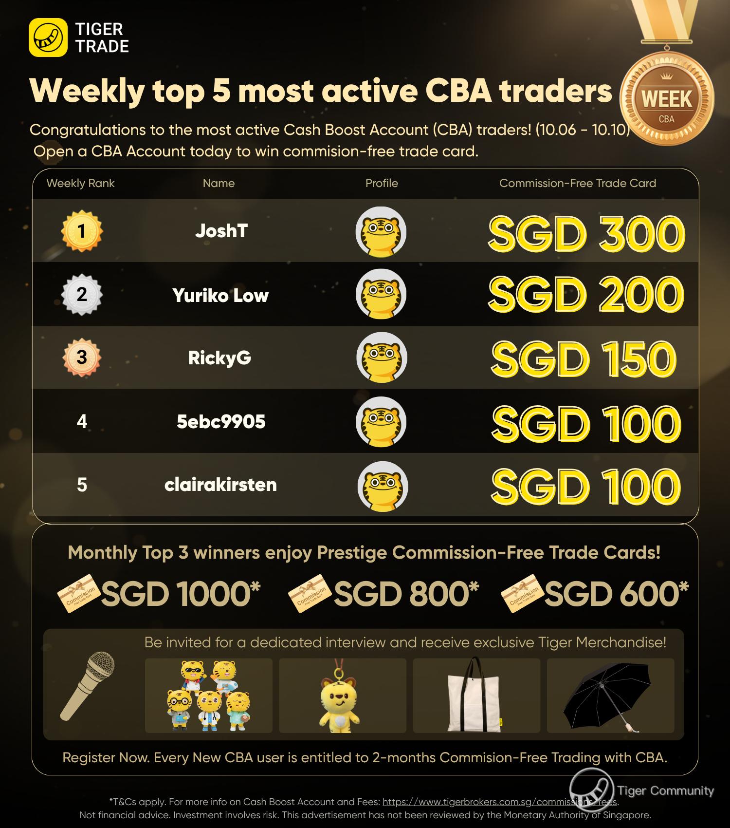🎉🎉Here we present the top 5 most active/promising Cash Boost Account (CBA) traders for the week of October 6th-10th!🎉🎉