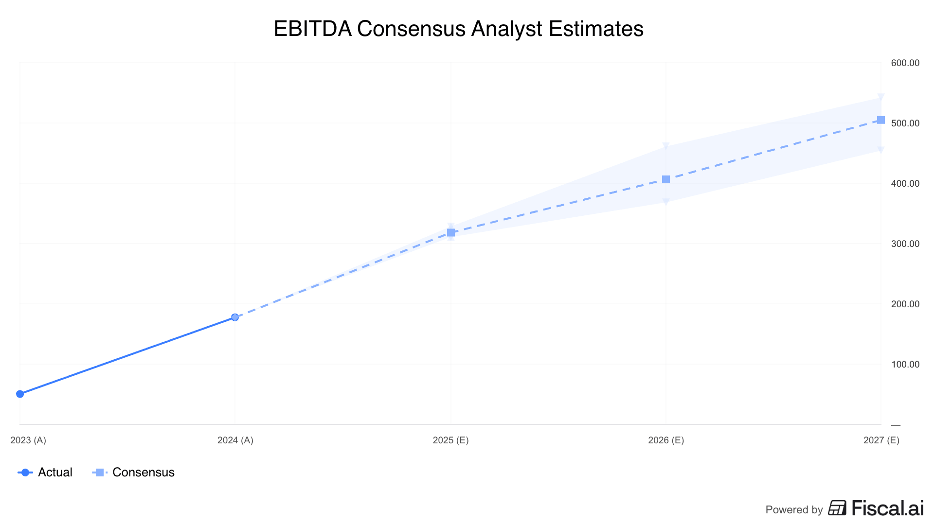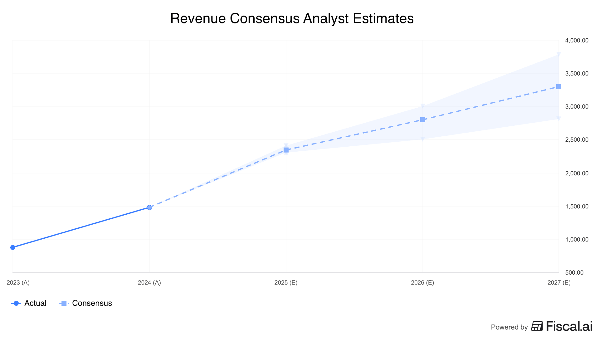 Analysts are on par with guidance for 2025, but notice that they only expect 19% growth in 2026 and 18% growth in 2027.