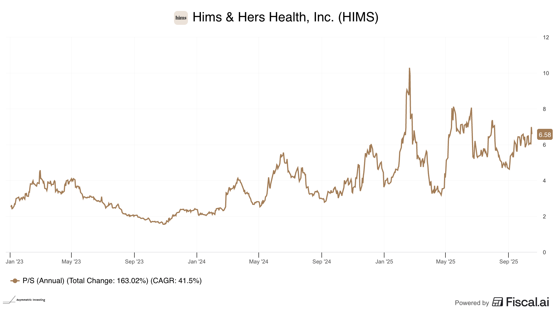 Hims & Hers is growing faster than both and traded for 6.6x sales! Why shouldn’t it trade for 60x sales?