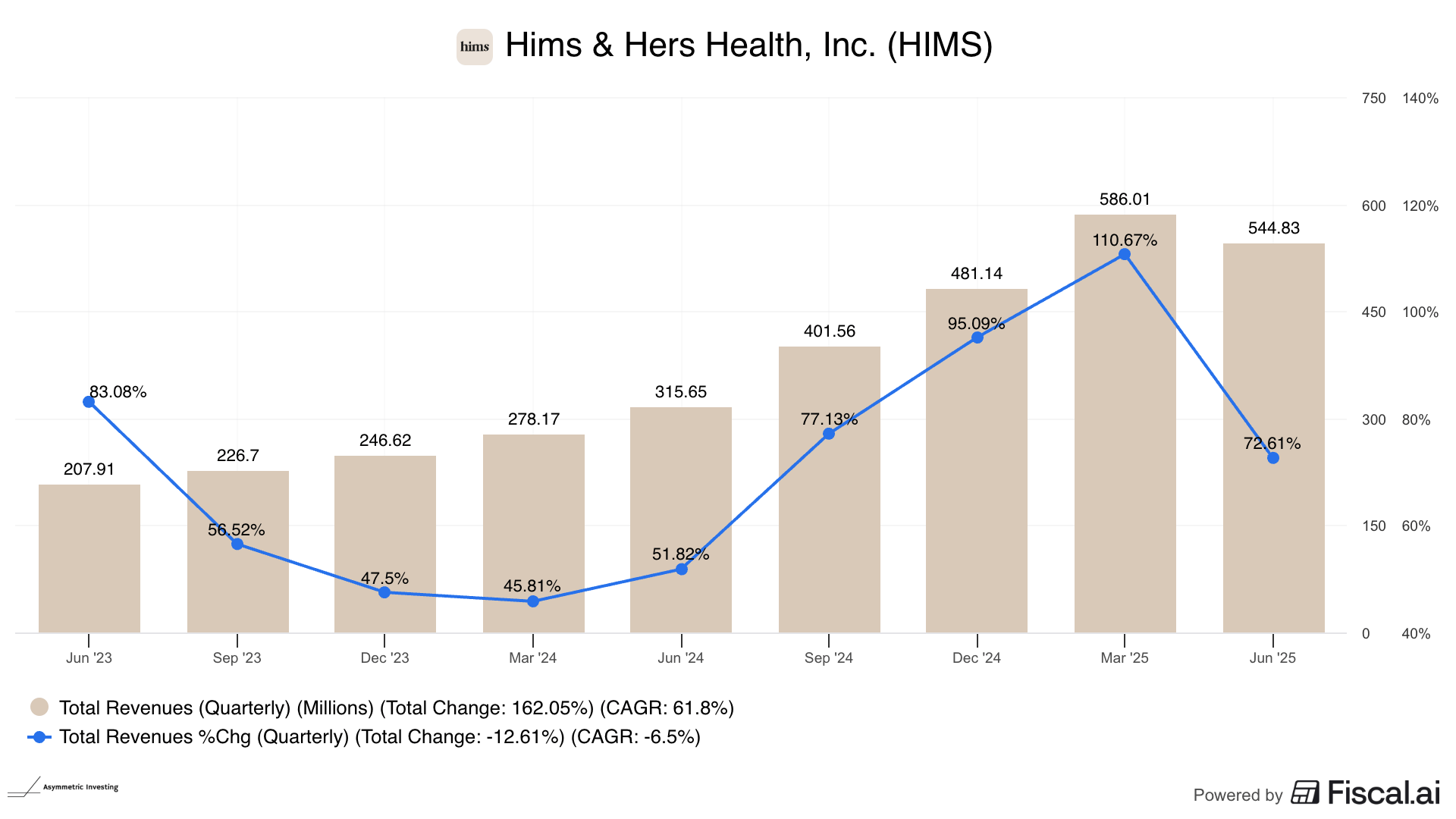 What we see with Hims & Hers is a company that grew tremendously with GLP-1s in the past year, but has seen growth slow over the past quarter.