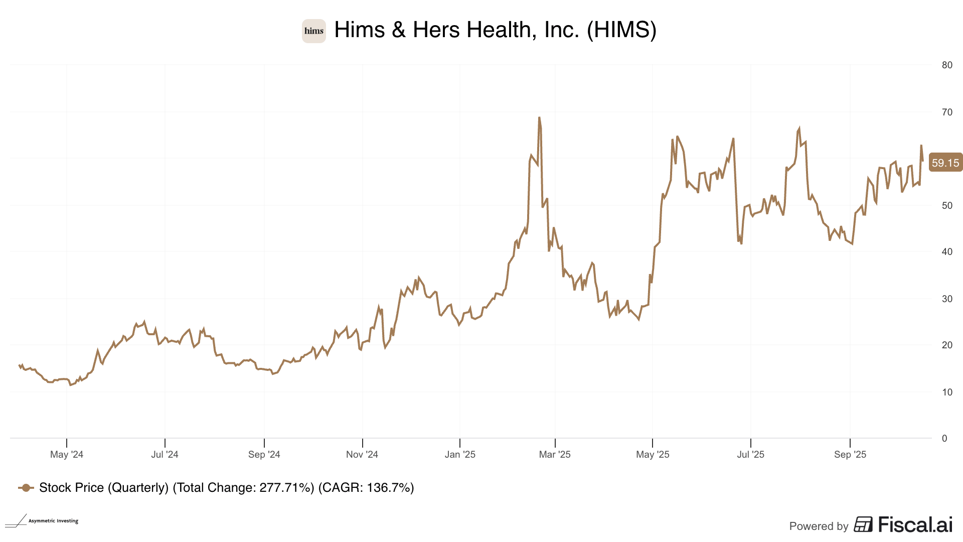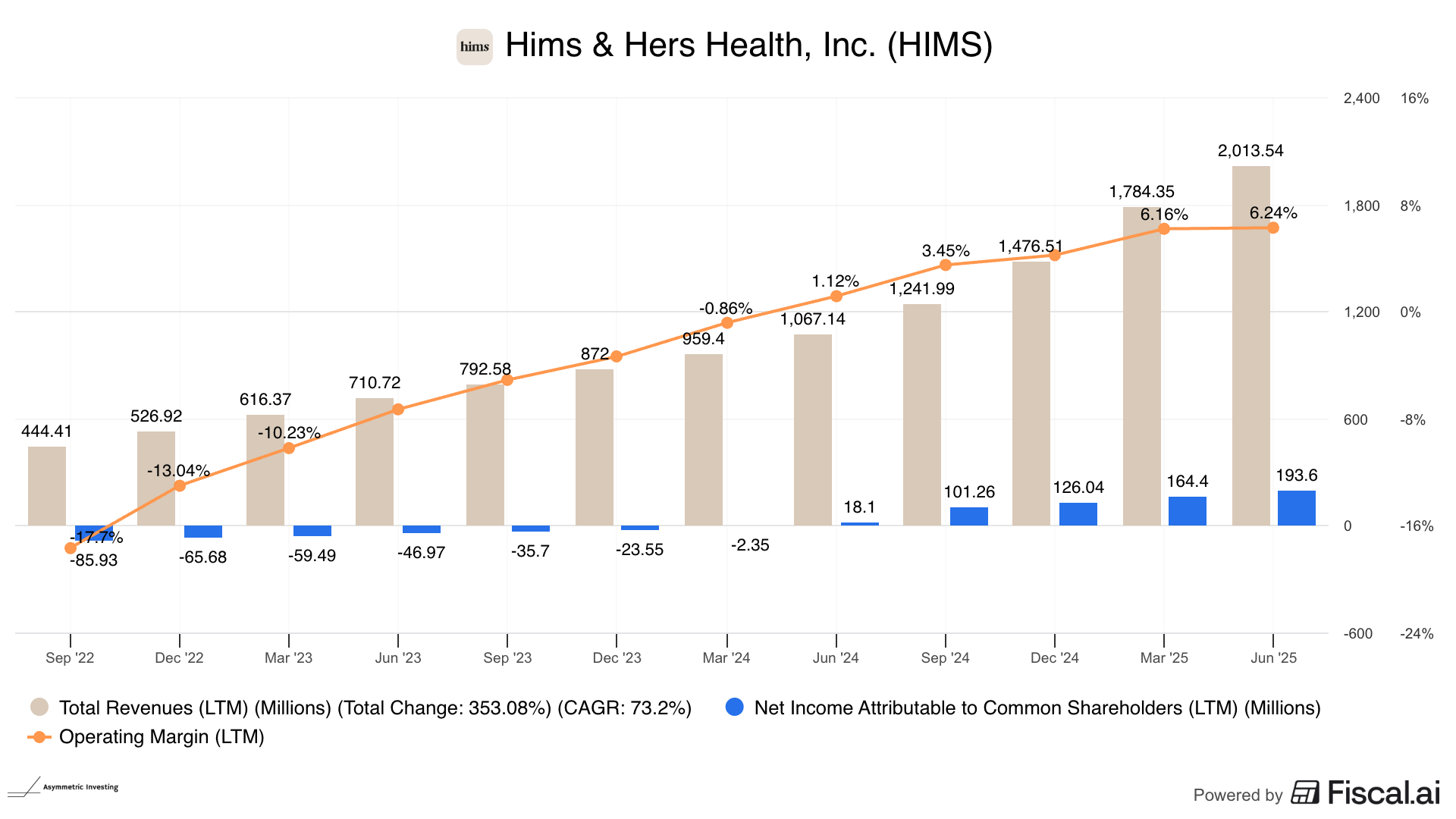 Add it up and you get a company with revenue growth, margin expansion, and multiple expansion at its back. I love the positioning of Hims & Hers and continue to think the potential is 10x — or more — over the next 10 years.