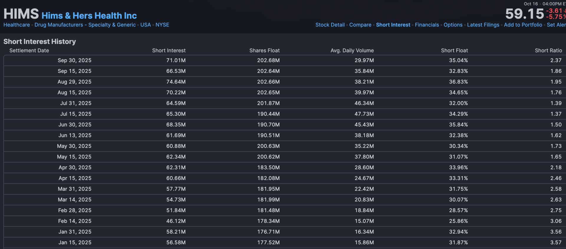 Adding to the potential fuel, 35% of shares of Hims & Hers are sold short.
