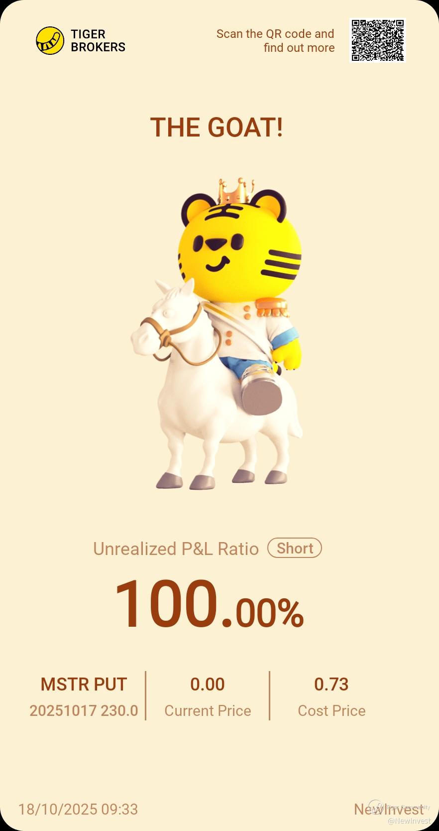 $MSTR 20251017 230.0 PUT$ collected full premium on expiry. Will see where MSTR is heading next week to sell next week's option.