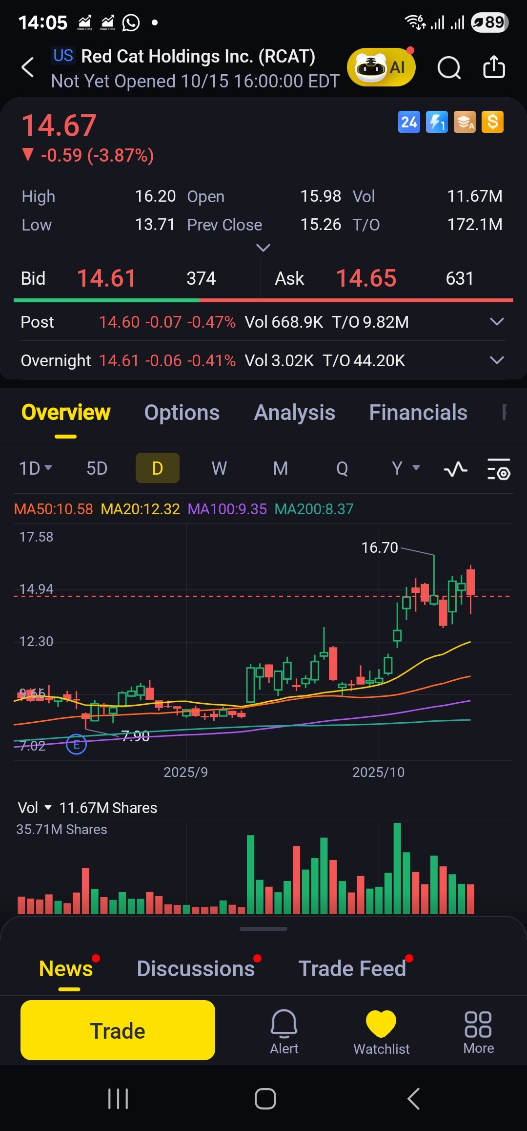 Alright, now we roll up our sleeves. Let's peek under the hood of RCAT โ is it undervalued or overhyped? What do the moving averages say? Lets go. ๐ฉโ๐ผ๐