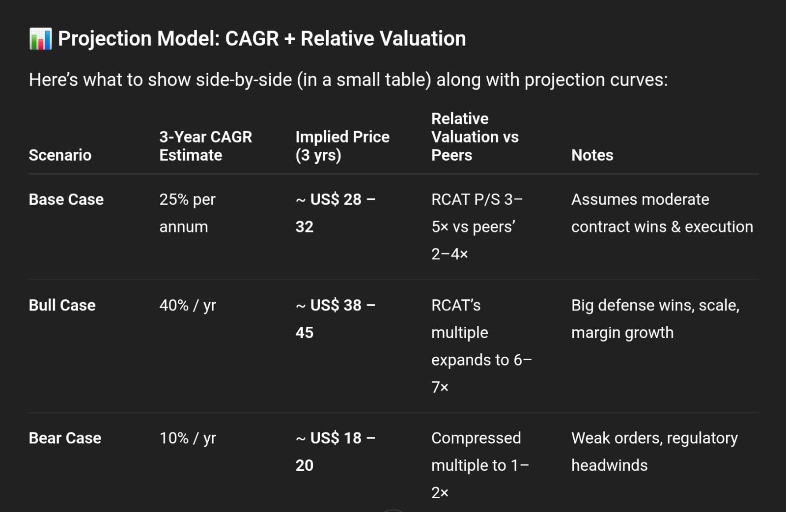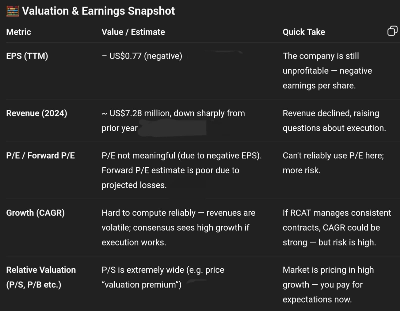 RCAT is in the "growth-option / speculative techโ bucket. It is not cheap by traditional metrics because it isn't making profits yet. If you're buying, you are effectively betting that the growth narrative will land.