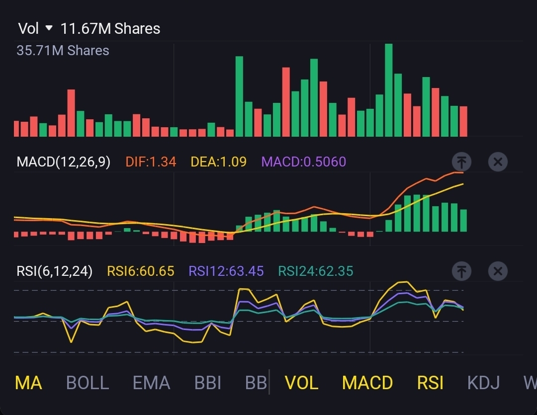 "Moving averages โฆ Buy outlook, 8 Buy signals and 4 Sell signals; MA20, MA50, MA200 are mostly supportive" That is a bullish sign price is riding upward momentum.