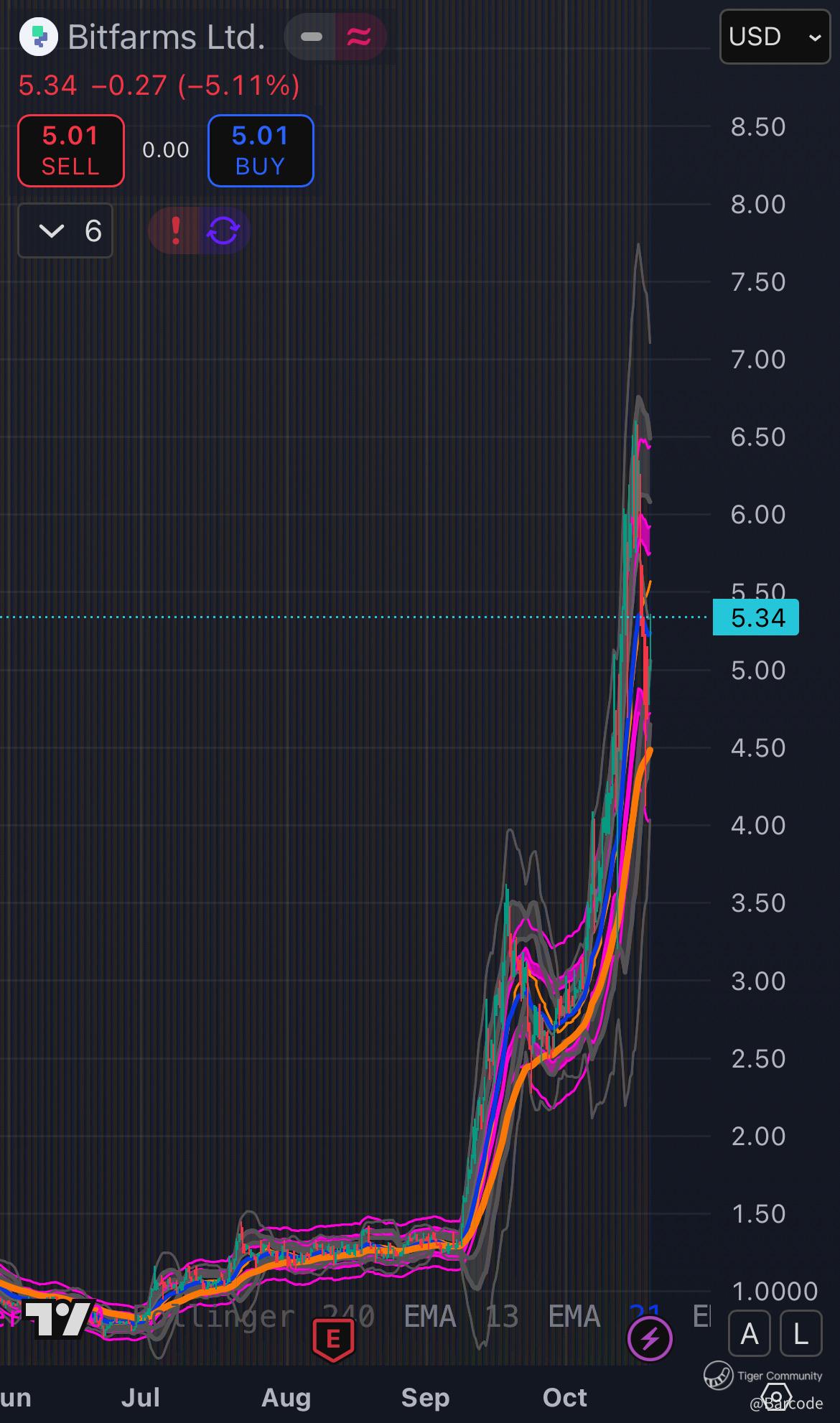 Bitfarms ($BITF) embodies this momentum perfectly. From $1.50 in July to $7 by early October before easing to $5.34, the move shows exactly how miner leverage works in bull cycles. The retrace looks more like re-accumulation than exhaustion. RSI and volume flow both support continuation if BTC breaks higher.