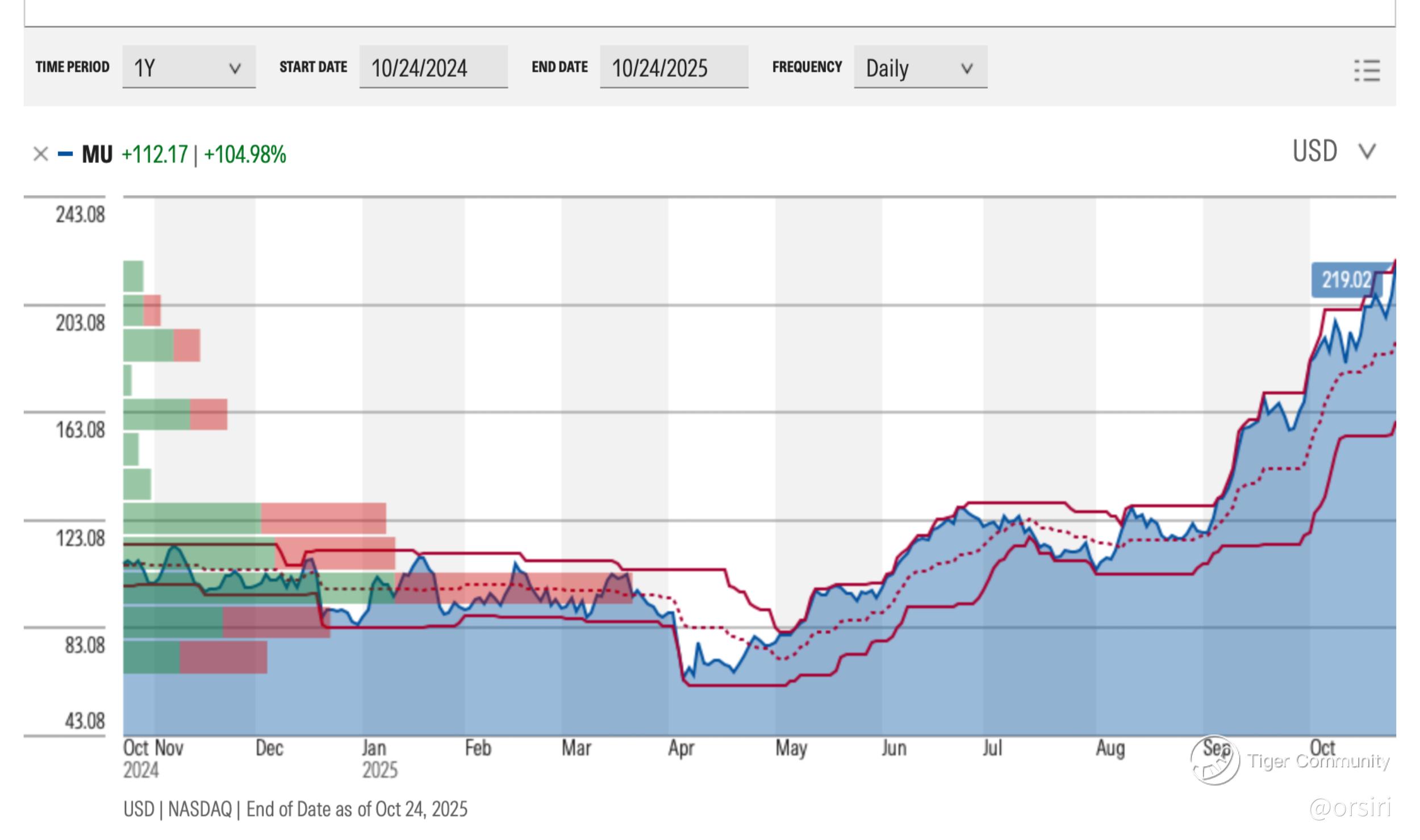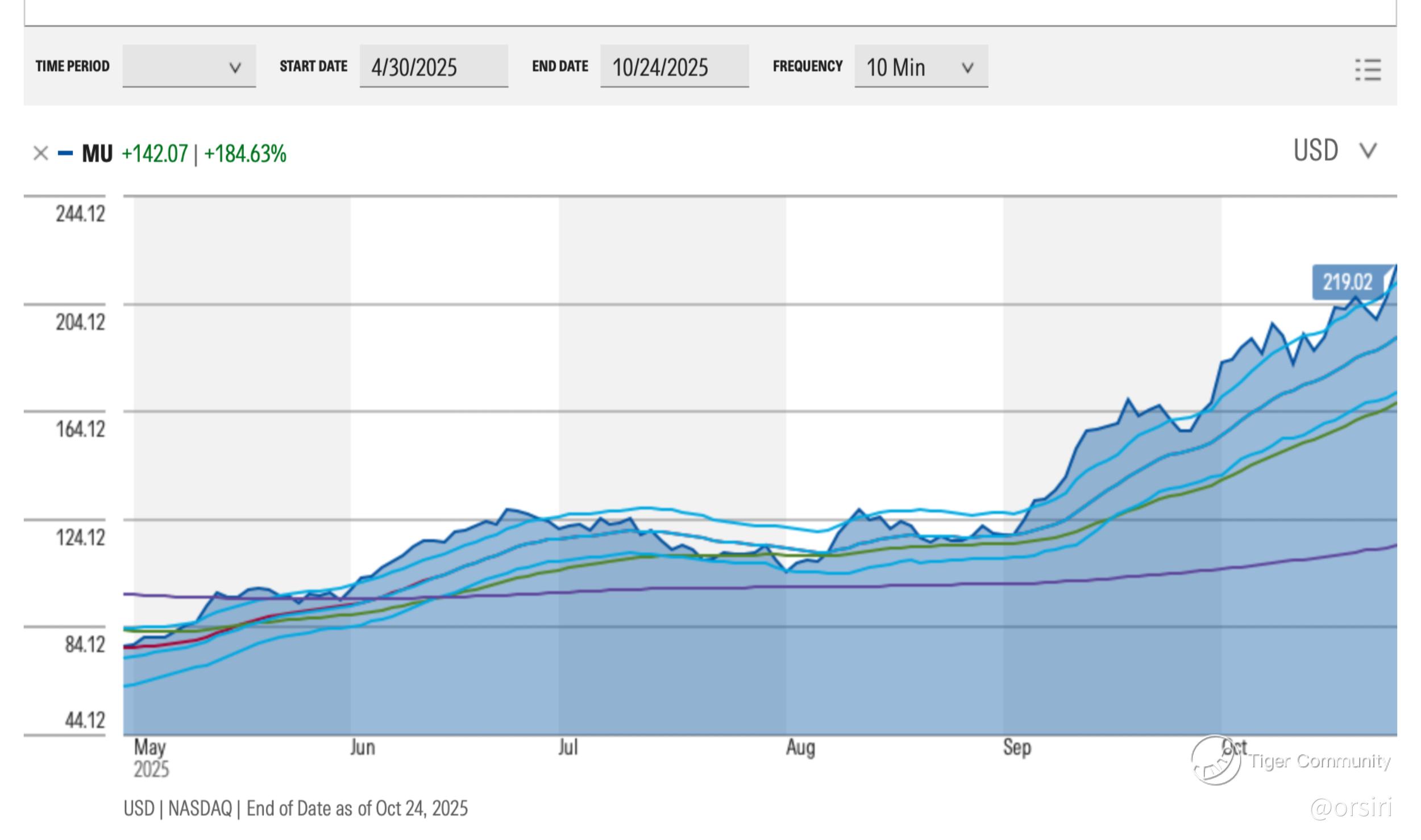I’ve followed $Micron Technology(MU)$ long enough to know that its stock usually behaves like a high-frequency mood swing. But 2025 has rewritten the pattern — up 160% year to date, trading near an all-time high of $219, and sitting comfortably in the $245 billion club. Many investors assume the best is already priced in. I don’t. I see a business that’s structurally stronger, strategically leaner, and finally in control of its own narrative.