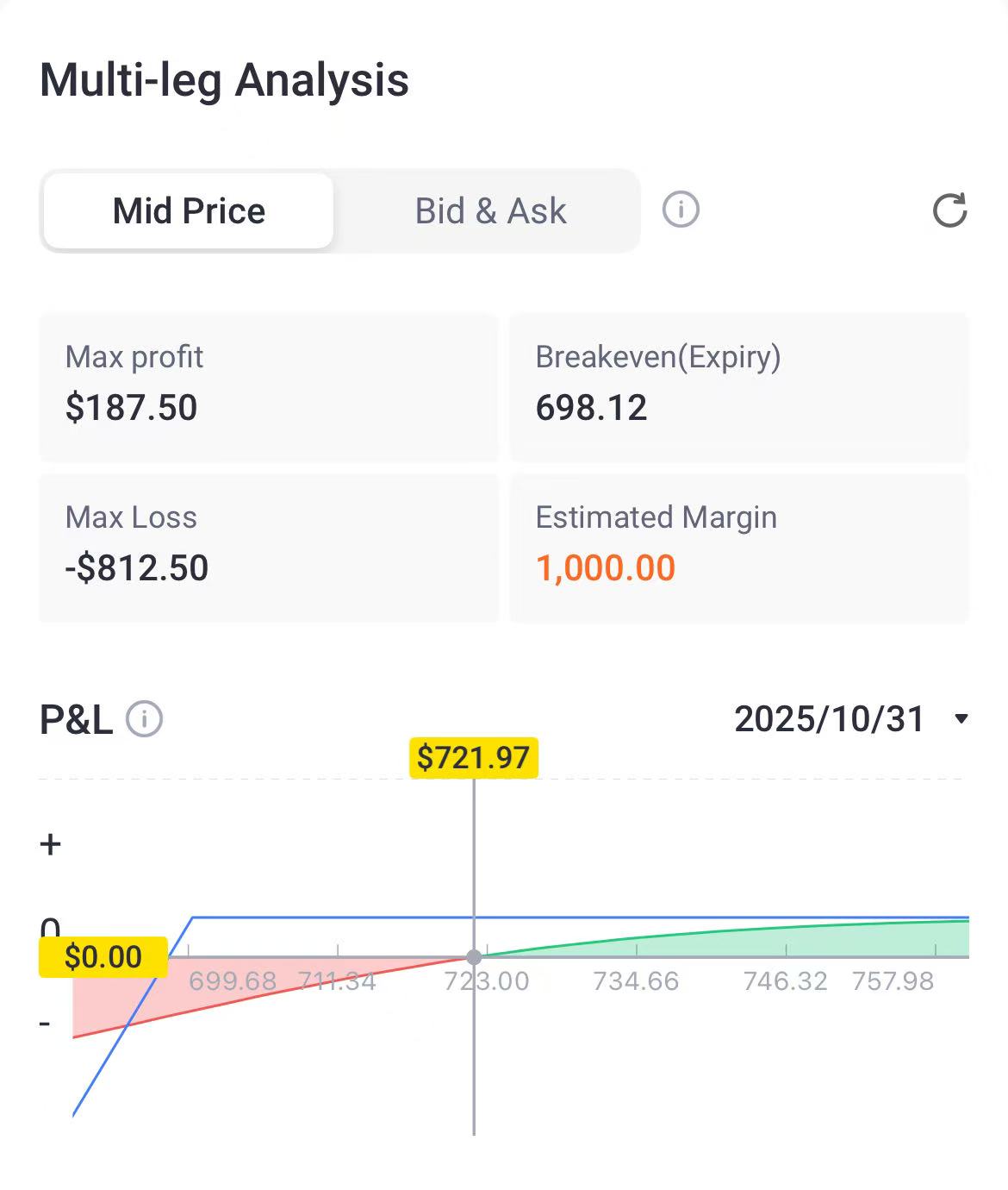 Strategy assumption: Meta’s share price will stay above $700 before this Friday, implying a 6.77% downside buffer.