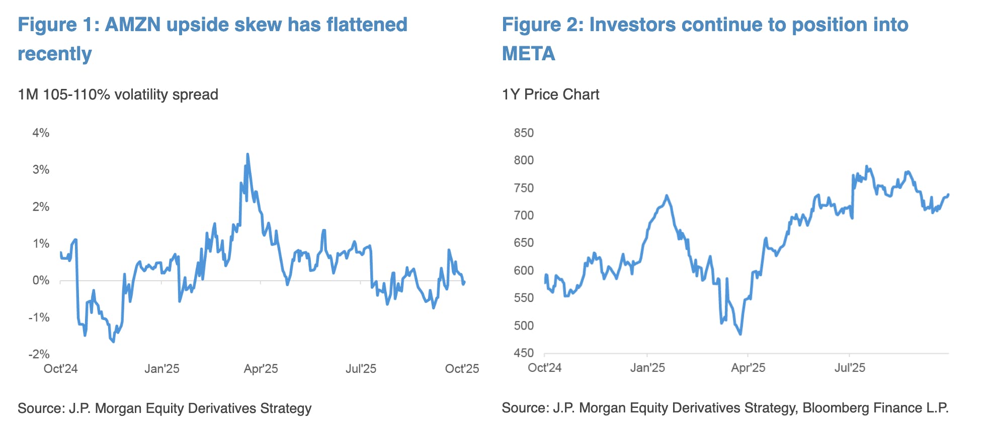 J.P. Morgan’s option strategies on Amazon and Meta are bullish, expecting both stocks to rise by over 5%.