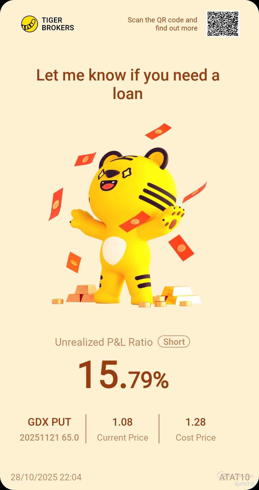 $GDX 20251121 65.0 PUT$ Trying my luck with this $65 strike. Let's see if I get lucky. đ