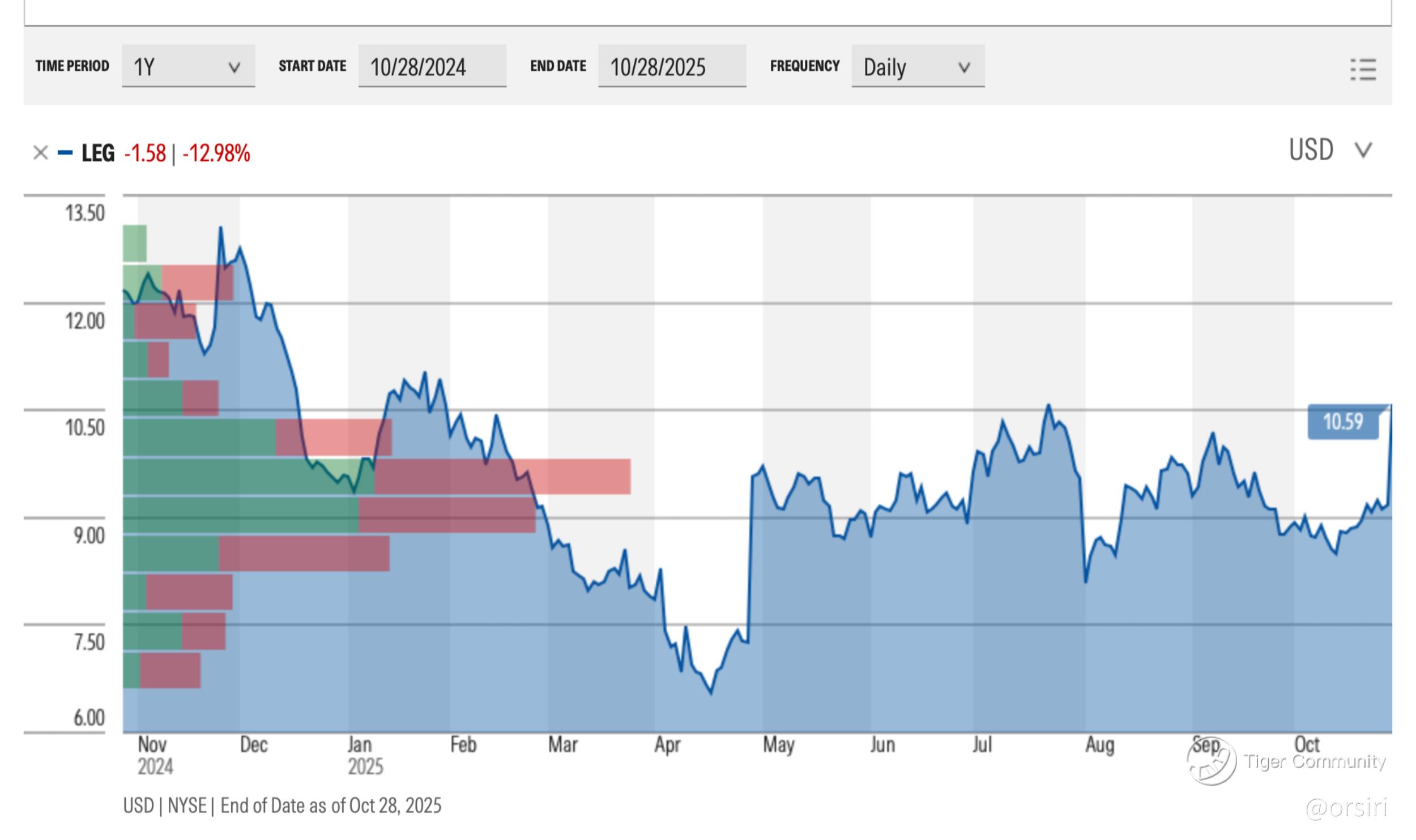 The competitive environment remains tough. Leggett’s peers — such as $Somnigroup International Inc(SGI)$ and $La-Z-Boy(LZB)$ — benefit from stronger brand power and more pricing control. Meanwhile, low-cost Asian manufacturers continue to pressure commodity bedding components. However, Leggett’s global footprint and its reputation as a reliable OEM partner still matter.