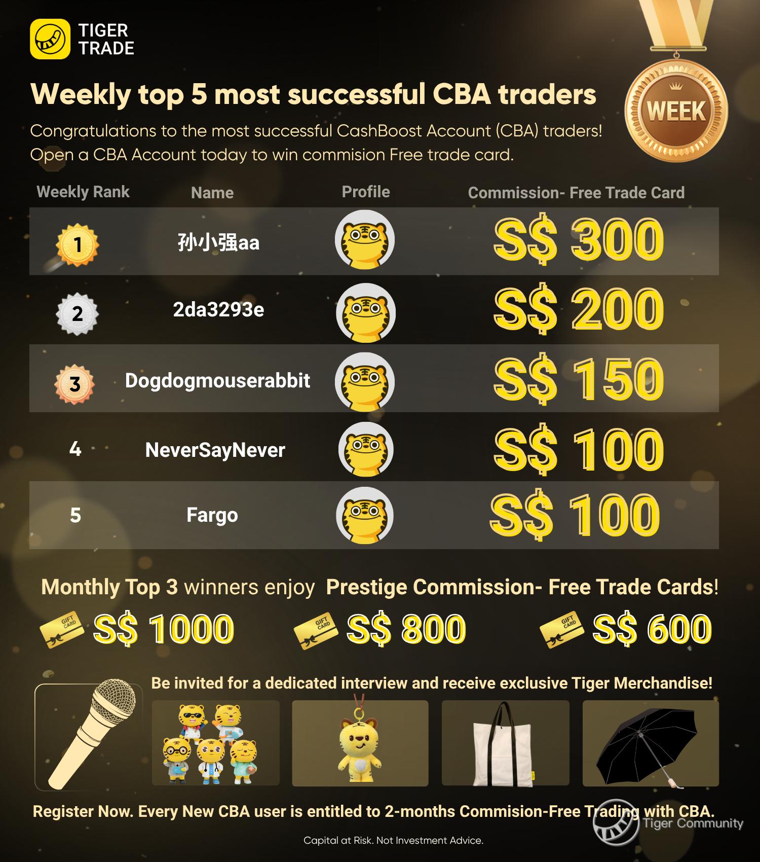 Weekly Rewards of Commission-Free Trade Card ranging from SGD 100~SGD 300!