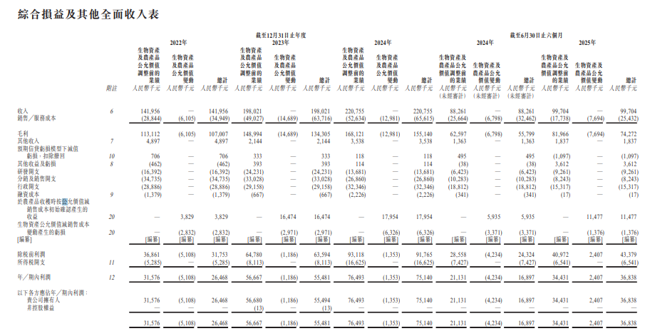 財務數據顯示,在過去的2022年、2023年、2024年和2025年前六個月,江西生物的營業收入分別爲人民幣1.42億、1.98億、2.21億和0.997億元,相應的淨利潤分別爲人民幣0.2647億、0.5548億、0.7514億和0.3684億元。