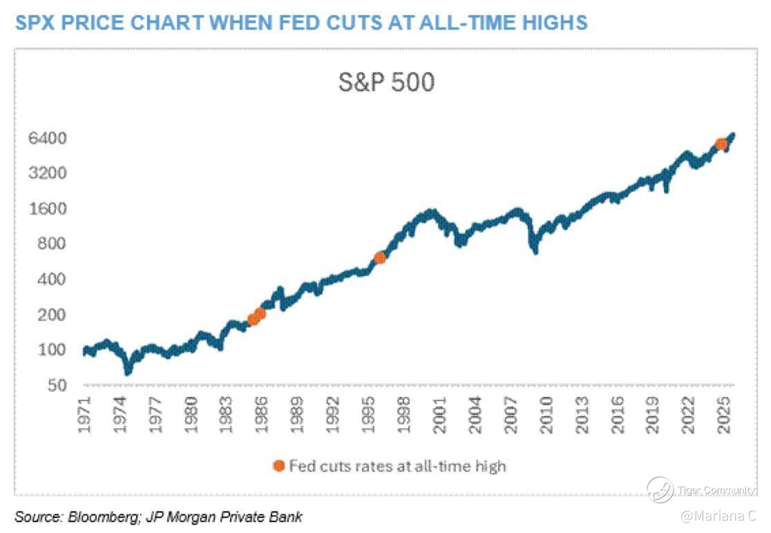 In the last four times the Fed cut interest rates while the S&P 500 was at record highs, the index posted gains in the following months. Yesterday, this scenario repeated for the fifth time.