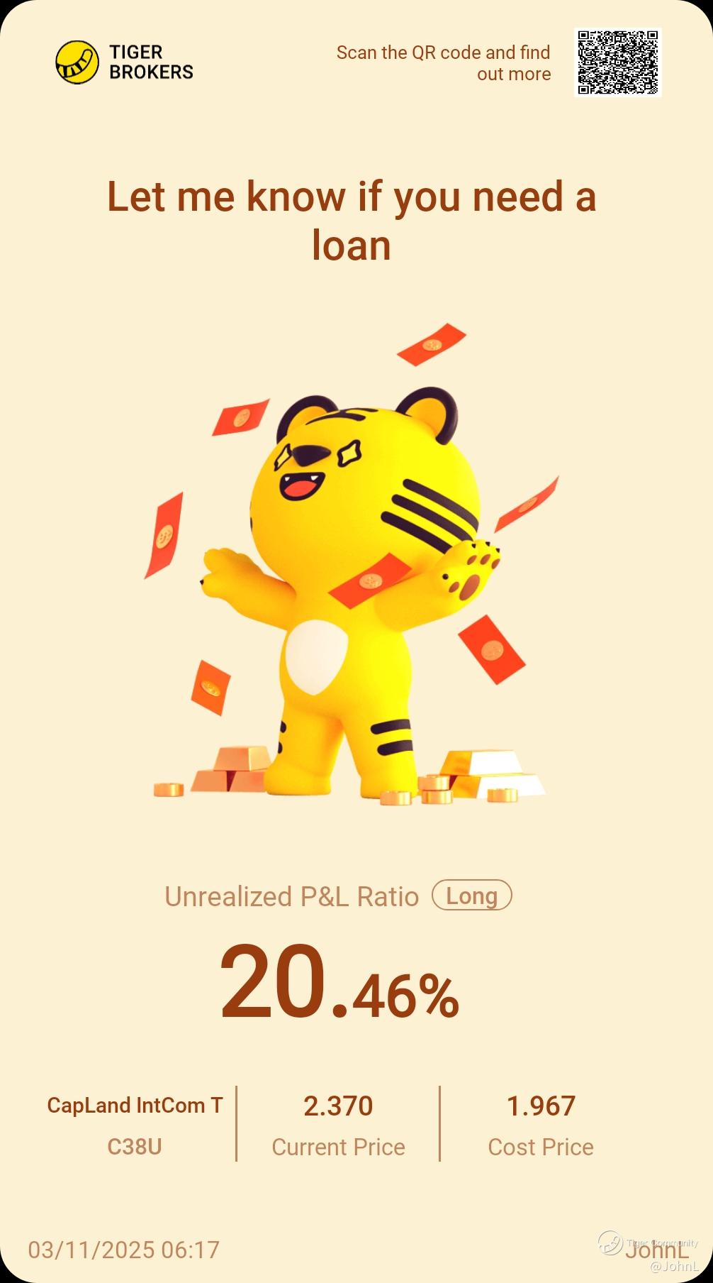 $CapLand IntCom T(C38U.SI)$ dividend and capital gain.. Not bad...