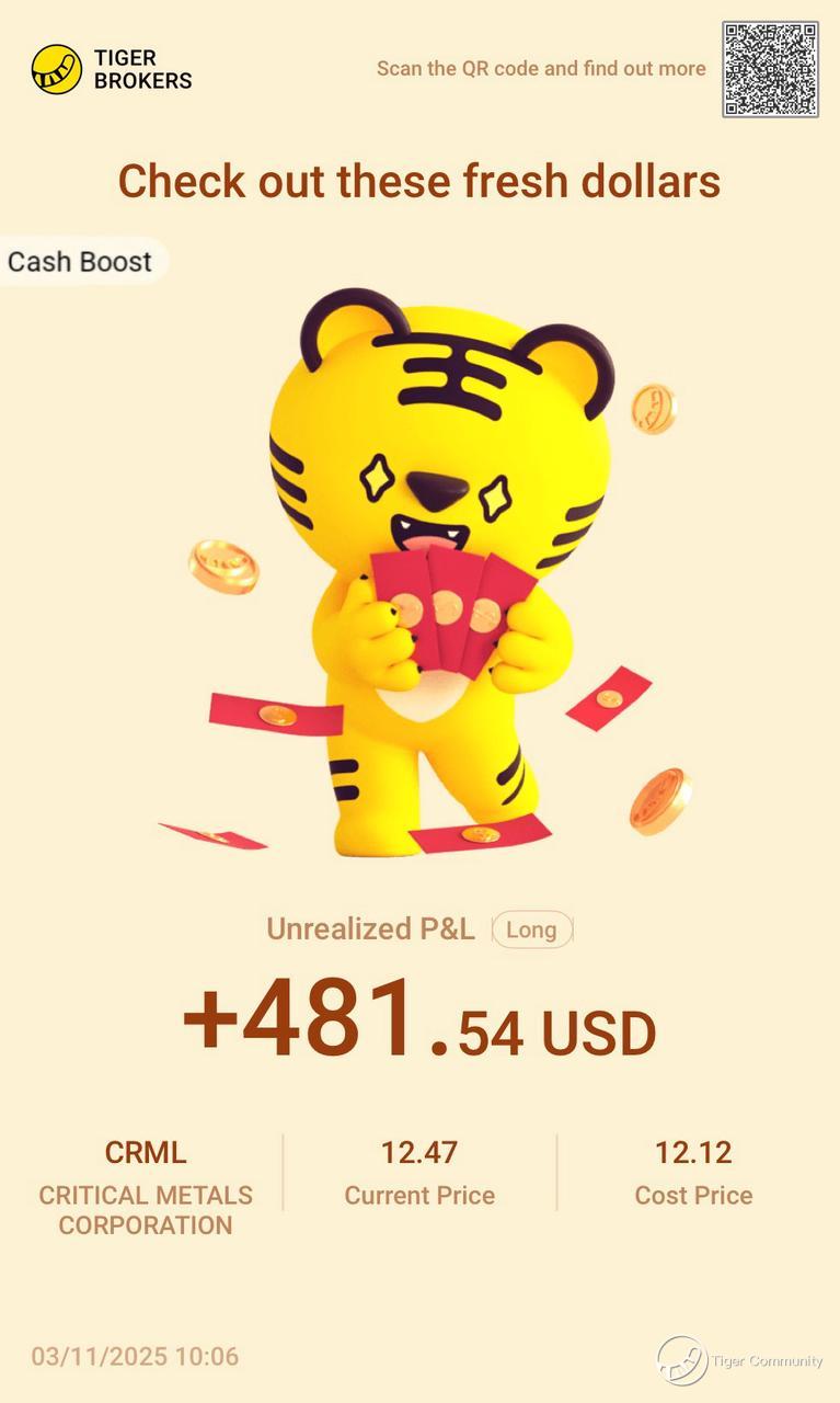 $CRITICAL METALS CORPORATION(CRML)$ 's critical metals play working! New energy demand unfolding, scarce resource value being rediscovered. Modest gains but sector outlook clear - holding for the upcycle!